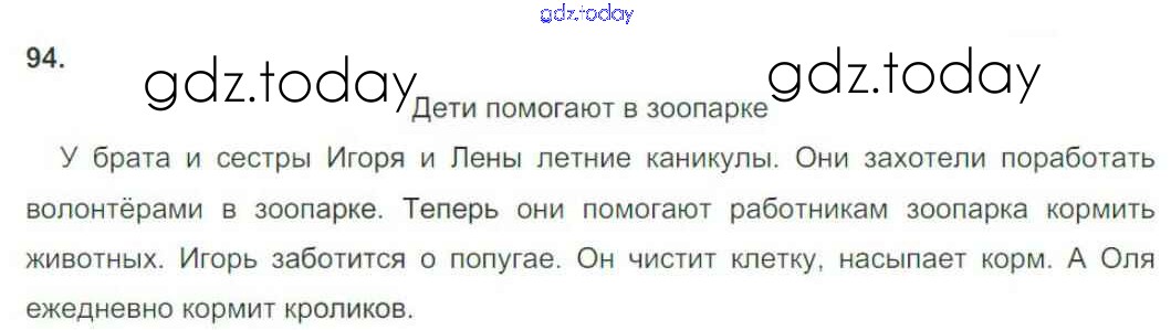 На страницах сайта gdz.today вы найдете учебный и вспомогательный материал, направленный на улучшения знаний школьной программы. ГДЗ - онлайн мир знаний Часть 2. Решение к упражнениям 94 Рабочей тетради по Русскому языку для 3 класса Канакина Просвещение Школа России 2012