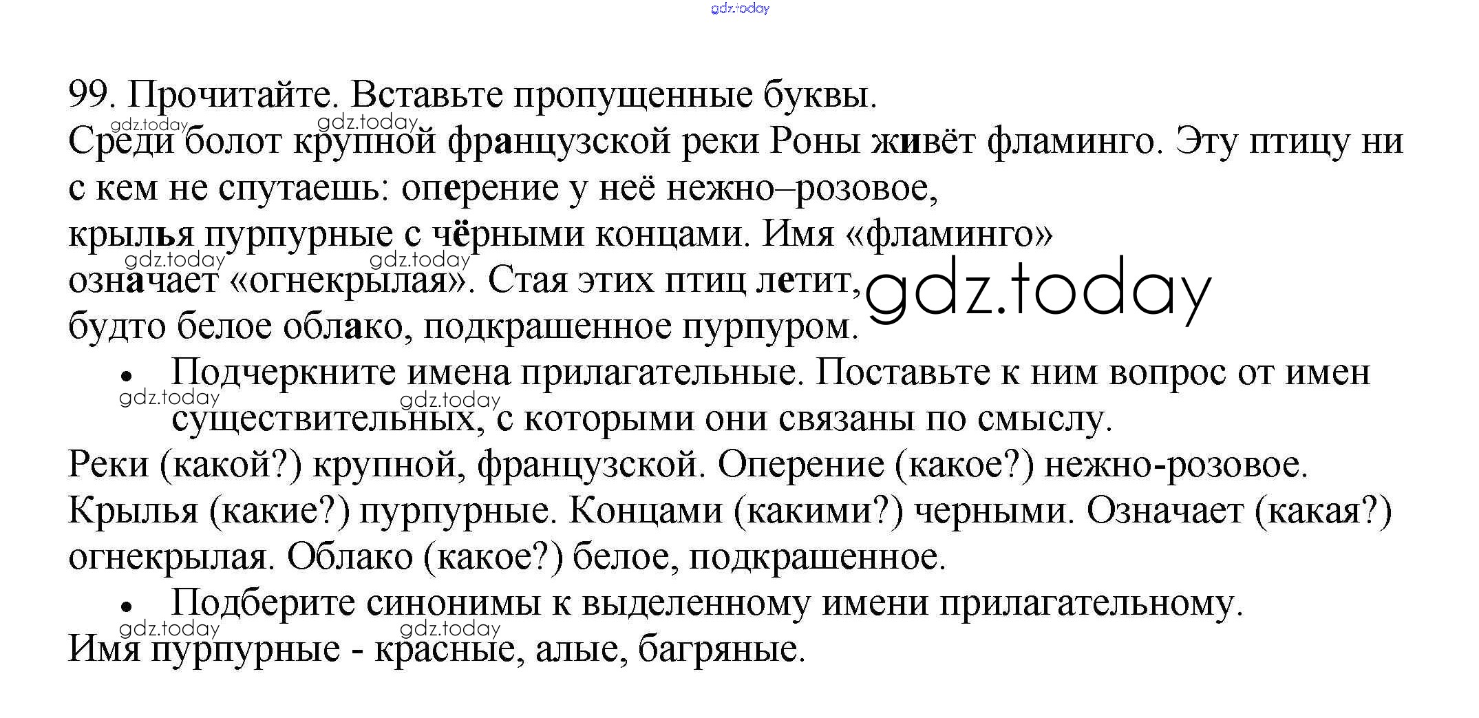 Ответы к Часть 2. Решение к упражнениям 99 Рабочей тетради по Русскому языку для 3 класса Канакина Просвещение Школа России 2012