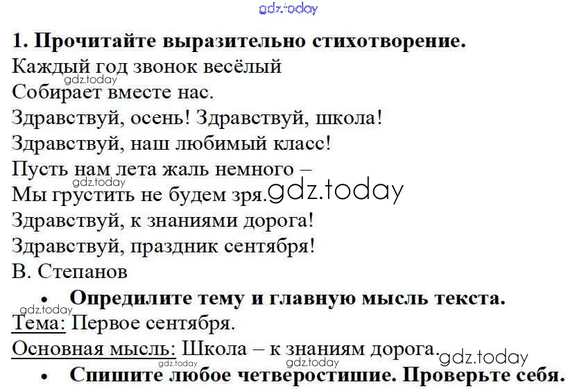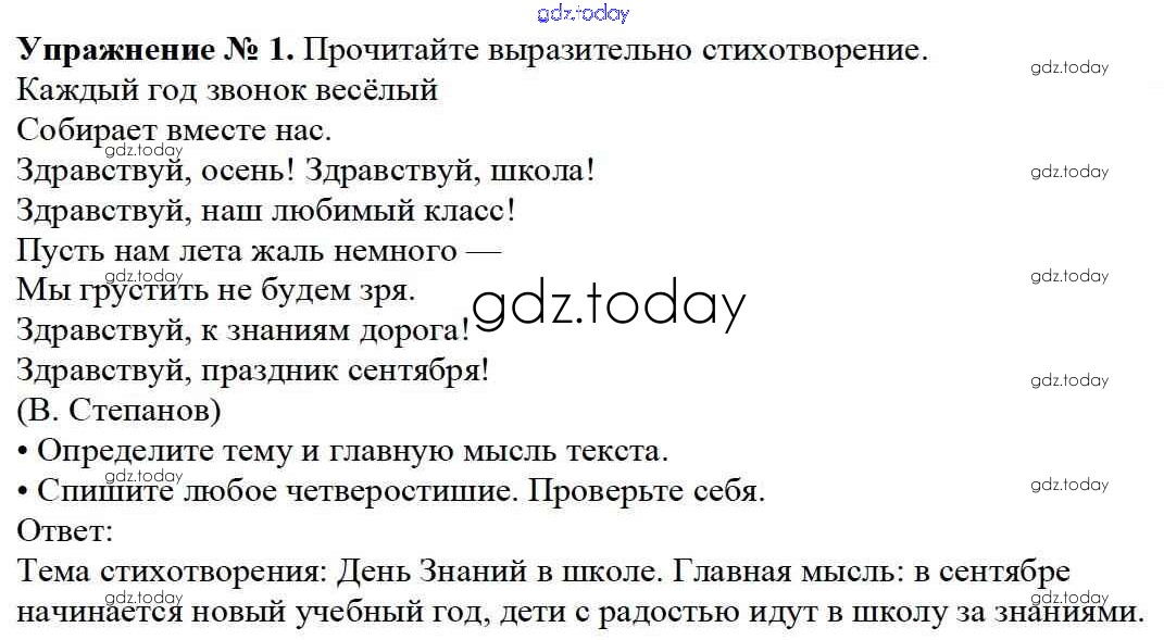 На страницах сайта gdz.today вы найдете учебный и вспомогательный материал, направленный на улучшения знаний школьной программы. ГДЗ - онлайн мир знаний Упражнения Часть 1 1 Учебнику по Русскому языку для 3 класса Канакина, Горецкий Просвещение Школа России 2013