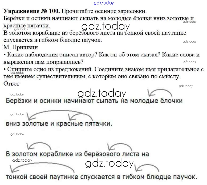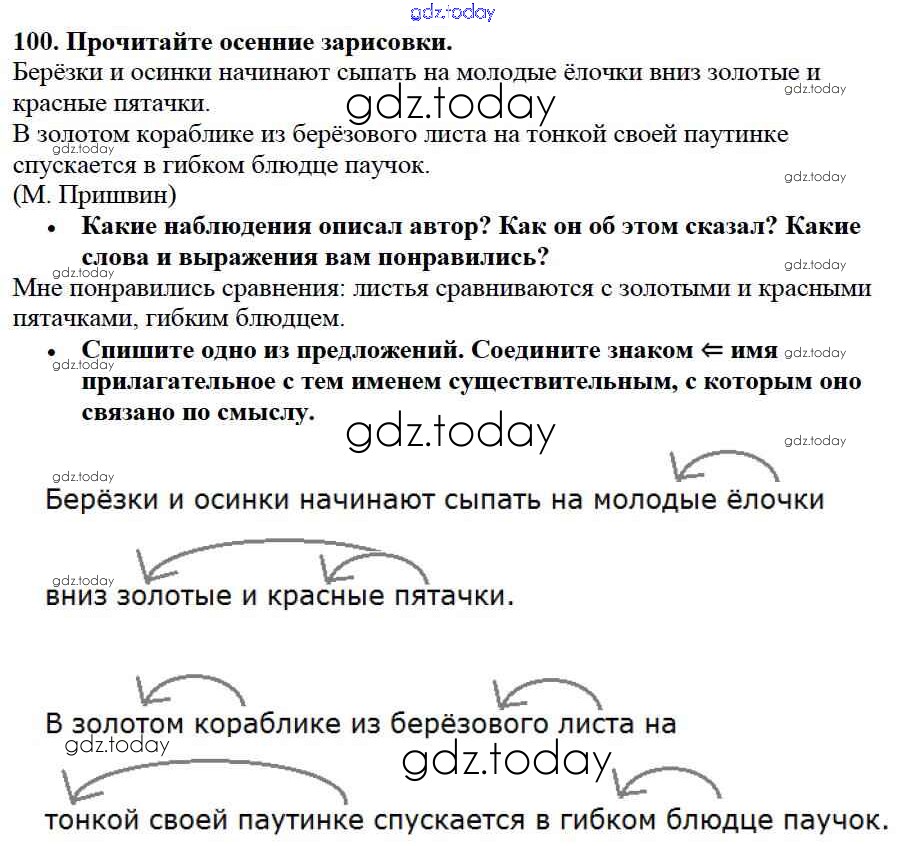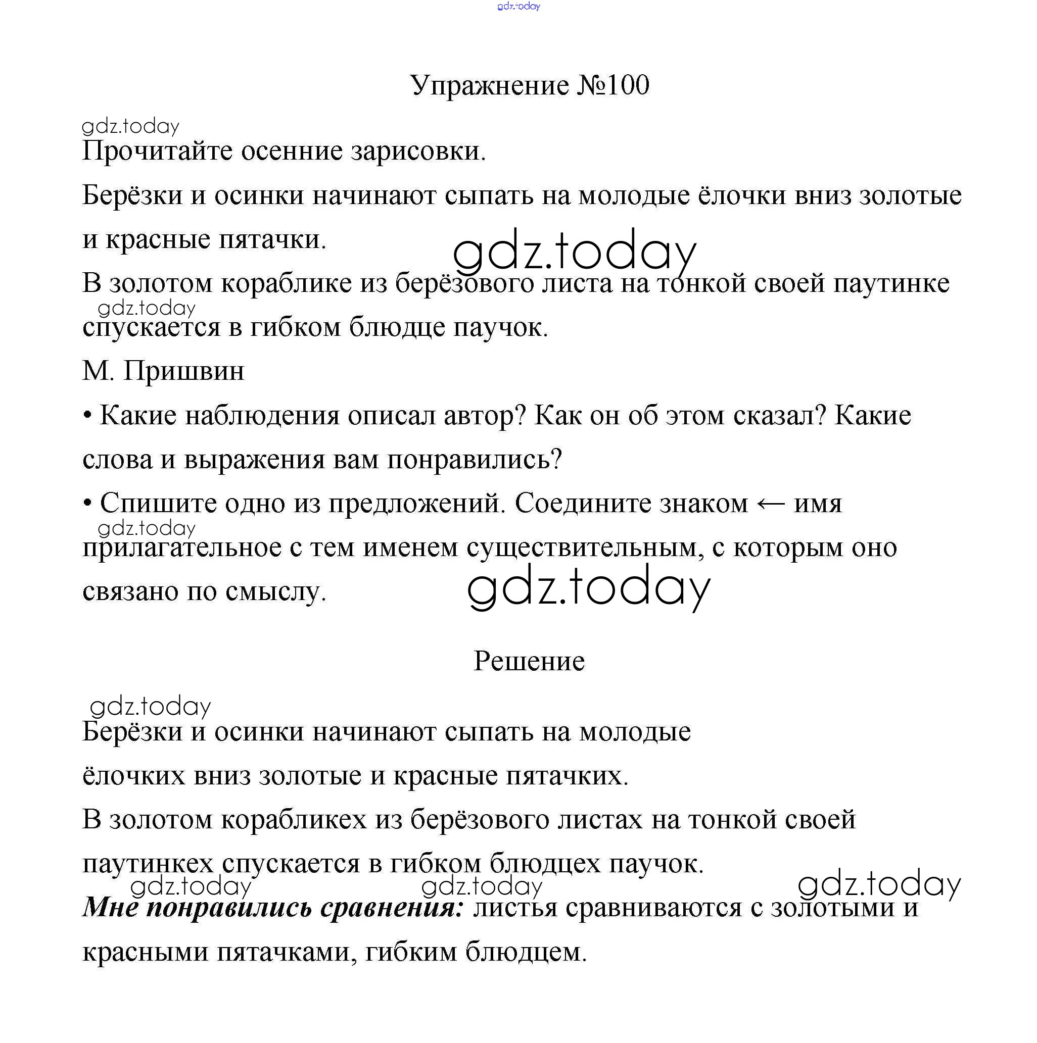 На страницах сайта gdz.today вы найдете учебный и вспомогательный материал, направленный на улучшения знаний школьной программы. ГДЗ - онлайн мир знаний Упражнения Часть 1 100 Учебнику по Русскому языку для 3 класса Канакина, Горецкий Просвещение Школа России 2013