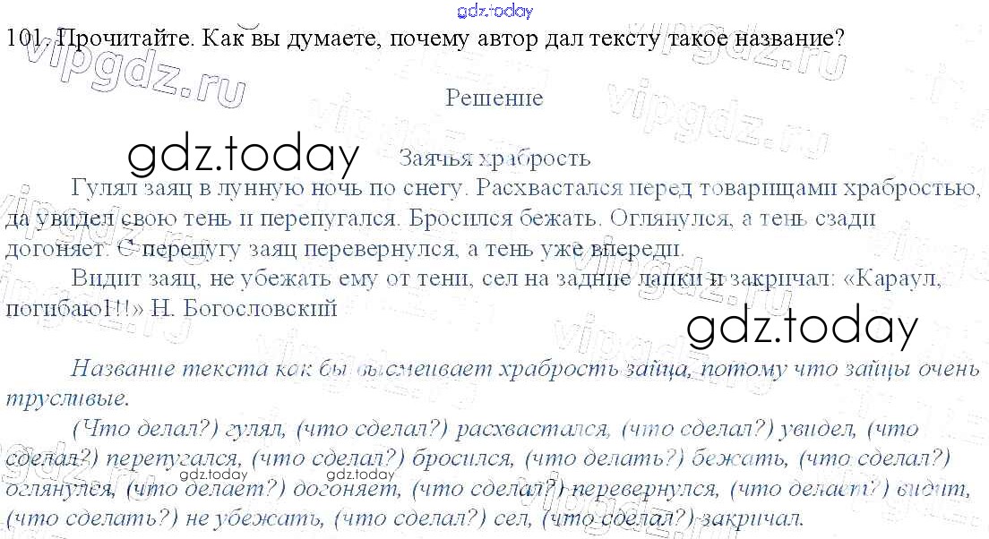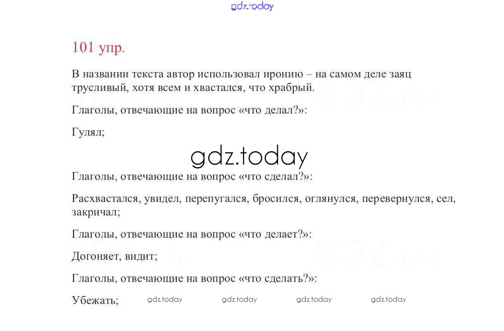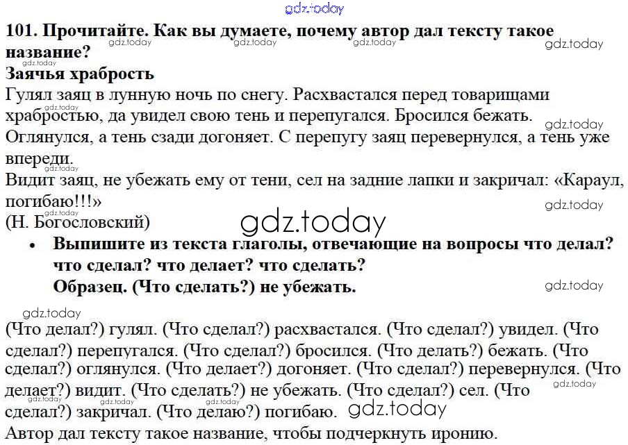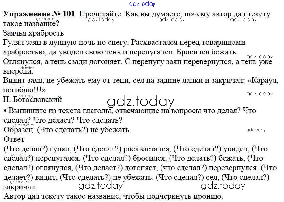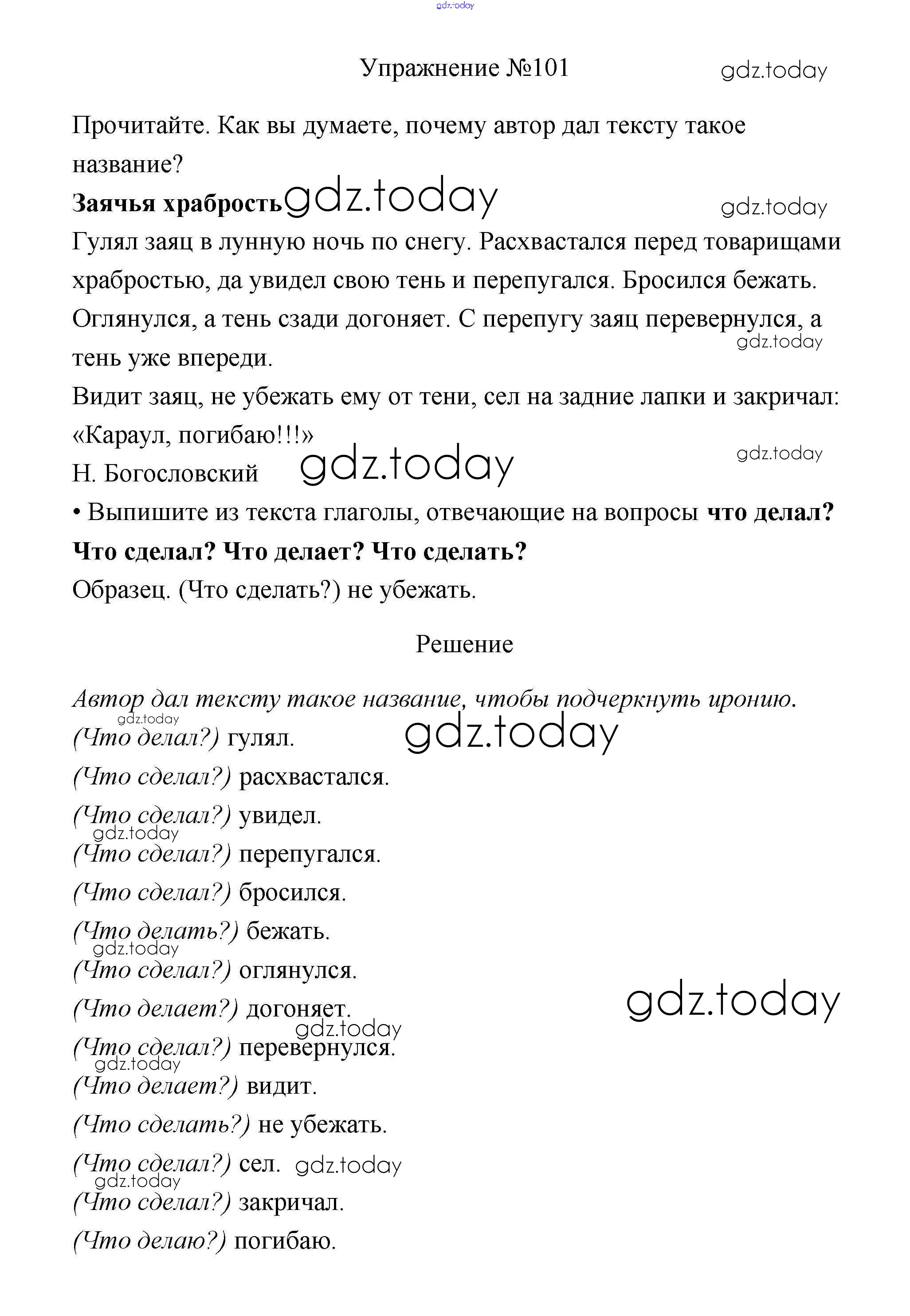 На страницах сайта gdz.today вы найдете учебный и вспомогательный материал, направленный на улучшения знаний школьной программы. ГДЗ - онлайн мир знаний Упражнения Часть 1 101 Учебнику по Русскому языку для 3 класса Канакина, Горецкий Просвещение Школа России 2013