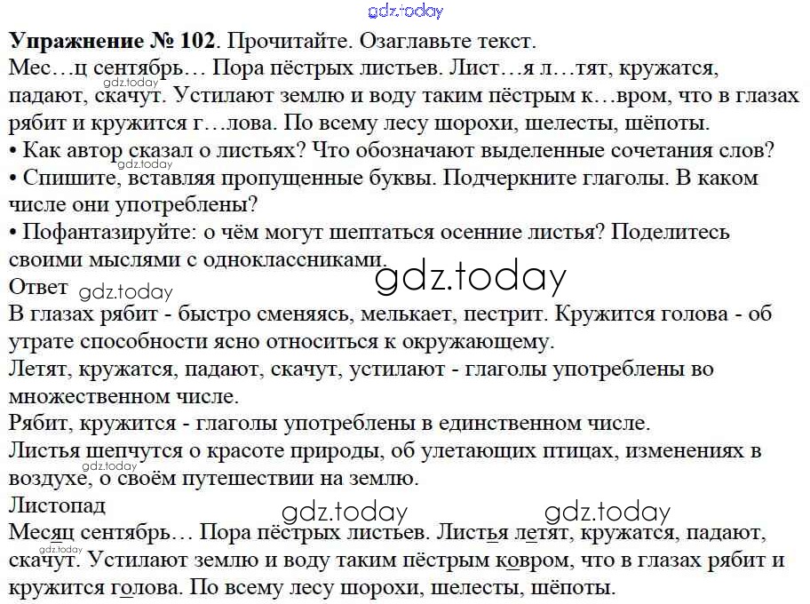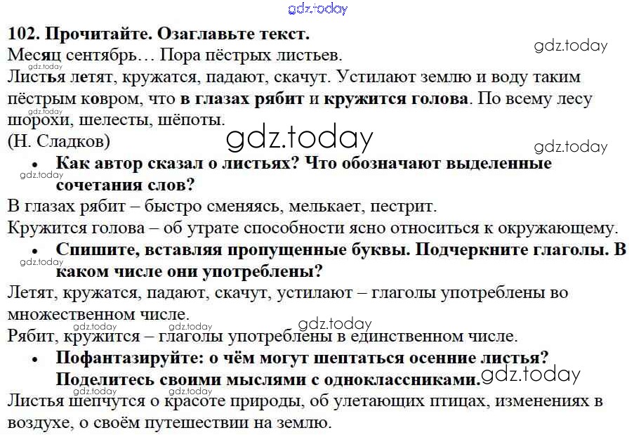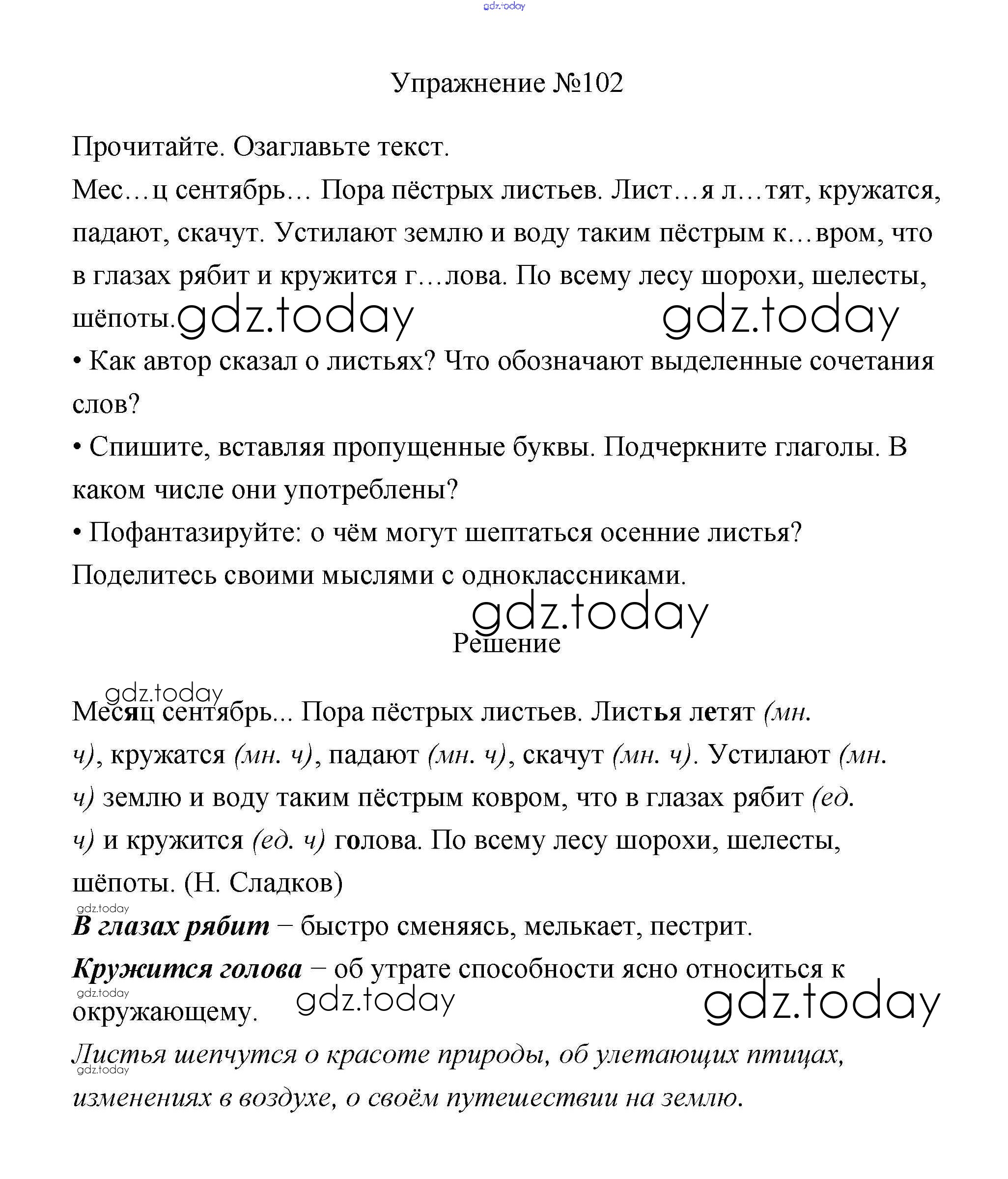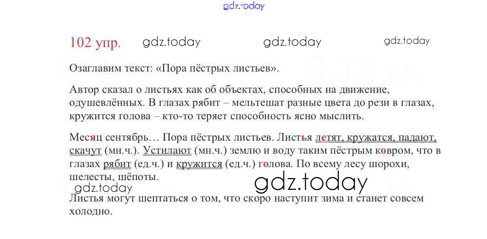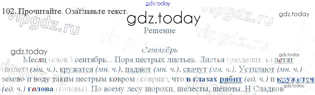 На страницах сайта gdz.today вы найдете учебный и вспомогательный материал, направленный на улучшения знаний школьной программы. ГДЗ - онлайн мир знаний Упражнения Часть 1 102 Учебнику по Русскому языку для 3 класса Канакина, Горецкий Просвещение Школа России 2013