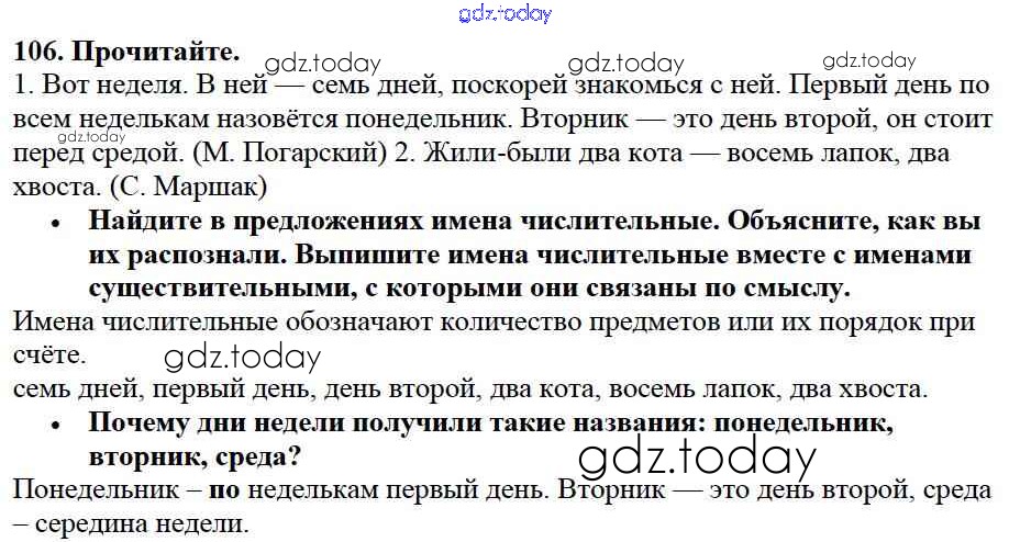 На страницах сайта gdz.today вы найдете учебный и вспомогательный материал, направленный на улучшения знаний школьной программы. ГДЗ - онлайн мир знаний Упражнения Часть 1 106 Учебнику по Русскому языку для 3 класса Канакина, Горецкий Просвещение Школа России 2013