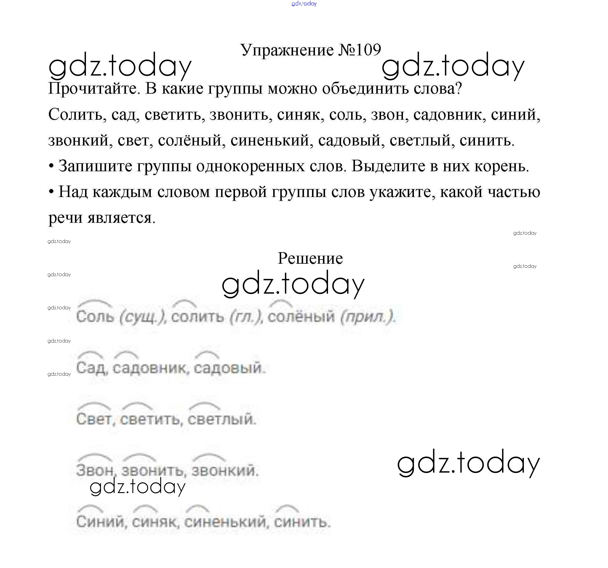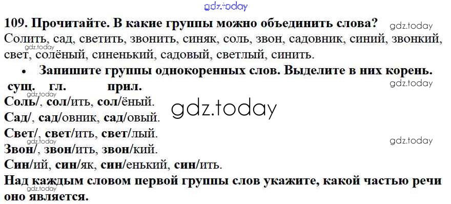 На страницах сайта gdz.today вы найдете учебный и вспомогательный материал, направленный на улучшения знаний школьной программы. ГДЗ - онлайн мир знаний Упражнения Часть 1 109 Учебнику по Русскому языку для 3 класса Канакина, Горецкий Просвещение Школа России 2013