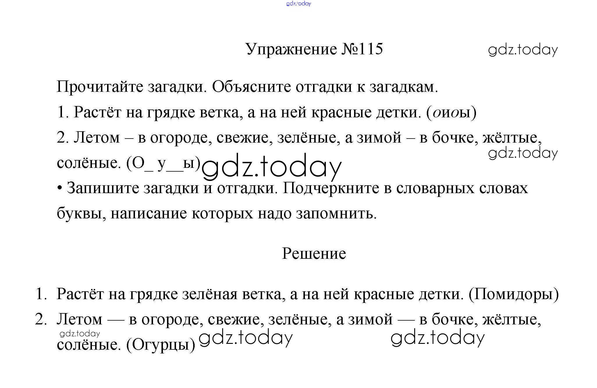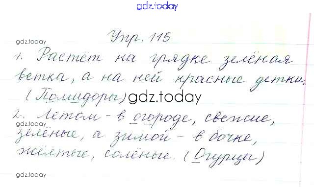 На страницах сайта gdz.today вы найдете учебный и вспомогательный материал, направленный на улучшения знаний школьной программы. ГДЗ - онлайн мир знаний Упражнения Часть 1 115 Учебнику по Русскому языку для 3 класса Канакина, Горецкий Просвещение Школа России 2013