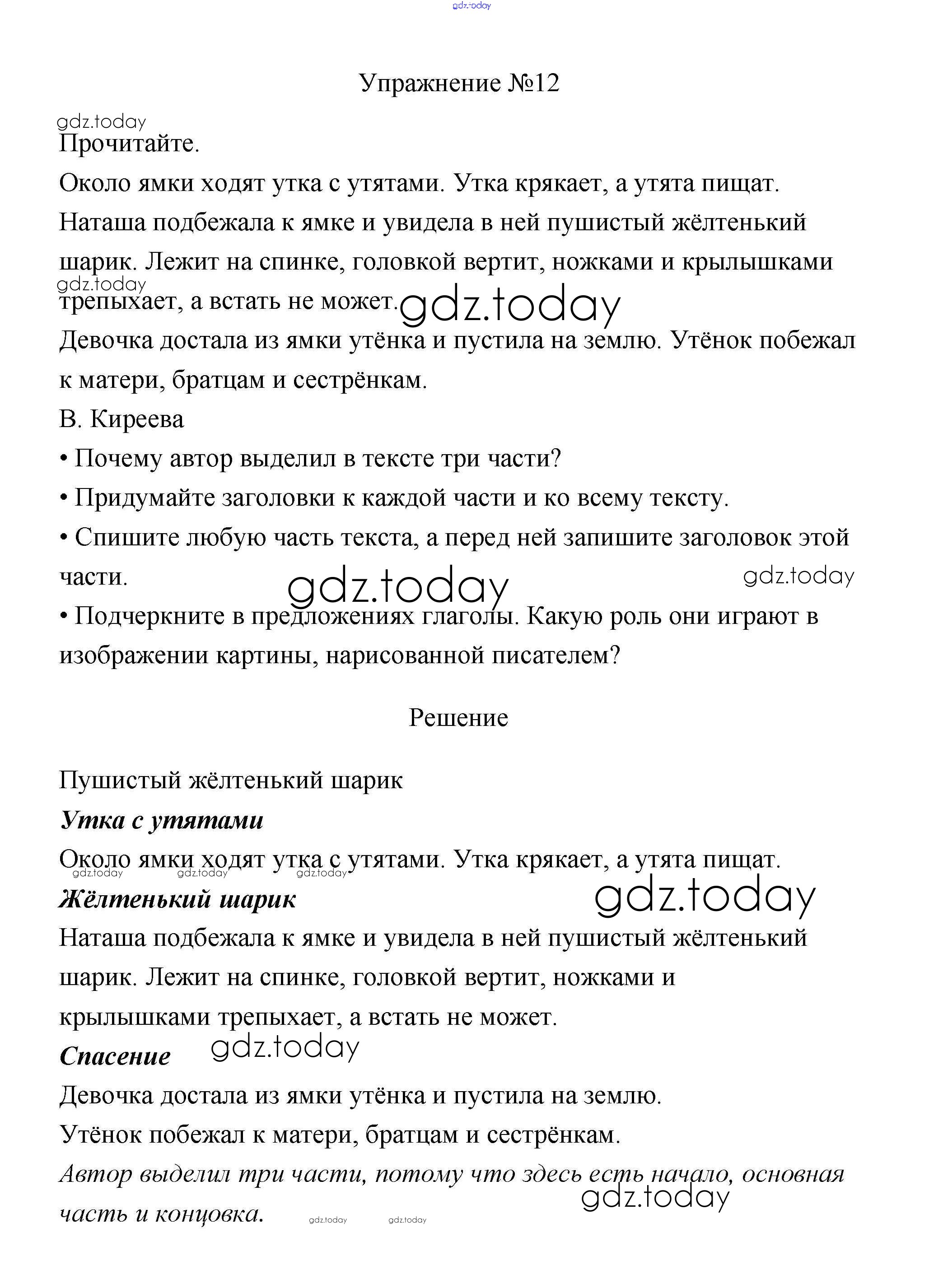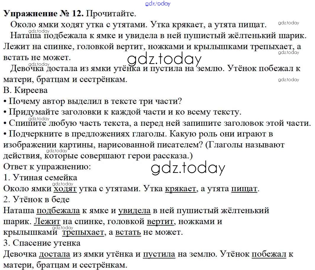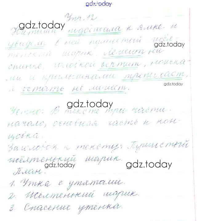 На страницах сайта gdz.today вы найдете учебный и вспомогательный материал, направленный на улучшения знаний школьной программы. ГДЗ - онлайн мир знаний Упражнения Часть 1 12 Учебнику по Русскому языку для 3 класса Канакина, Горецкий Просвещение Школа России 2013