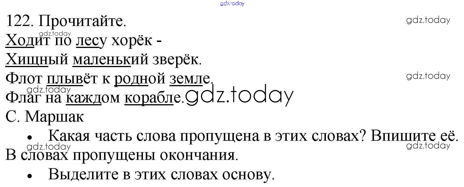 На страницах сайта gdz.today вы найдете учебный и вспомогательный материал, направленный на улучшения знаний школьной программы. ГДЗ - онлайн мир знаний Упражнения Часть 1 122 Учебнику по Русскому языку для 3 класса Канакина, Горецкий Просвещение Школа России 2013