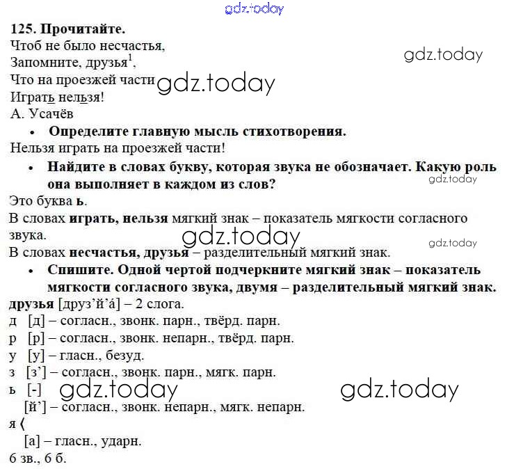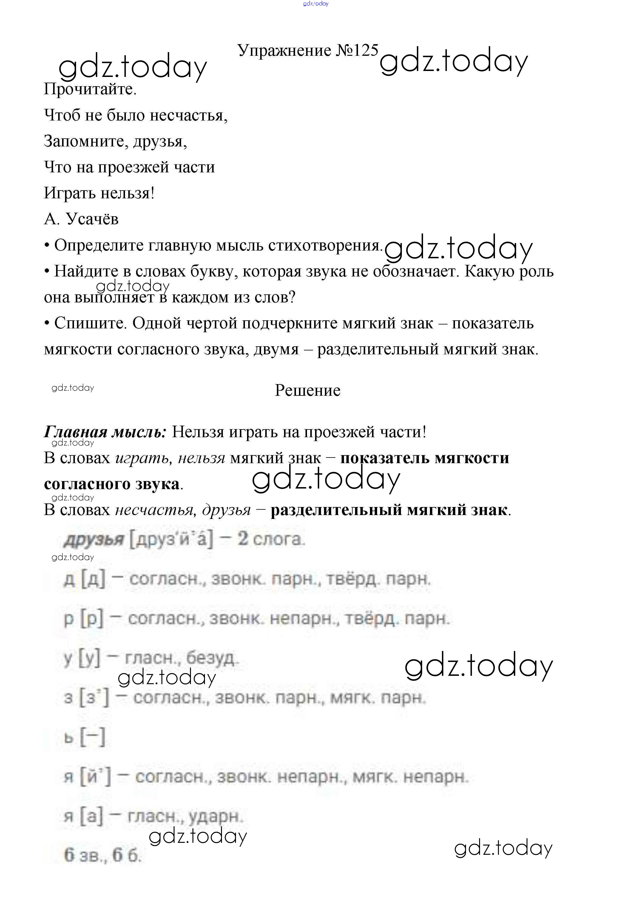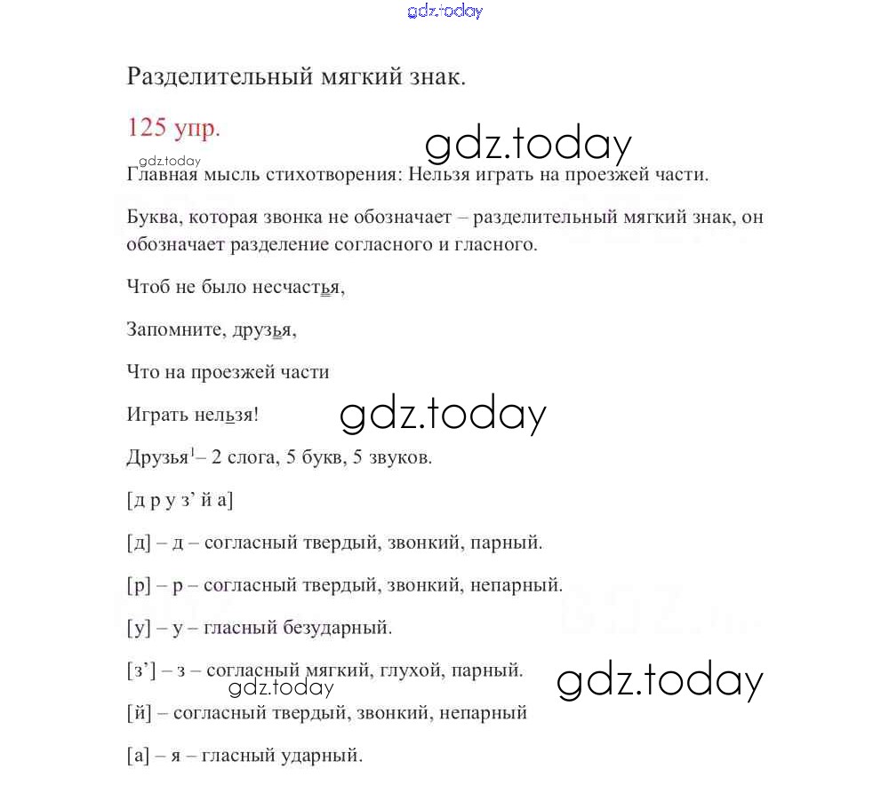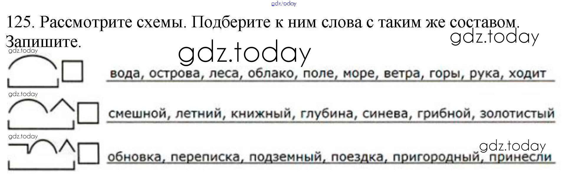 На страницах сайта gdz.today вы найдете учебный и вспомогательный материал, направленный на улучшения знаний школьной программы. ГДЗ - онлайн мир знаний Упражнения Часть 1 125 Учебнику по Русскому языку для 3 класса Канакина, Горецкий Просвещение Школа России 2013