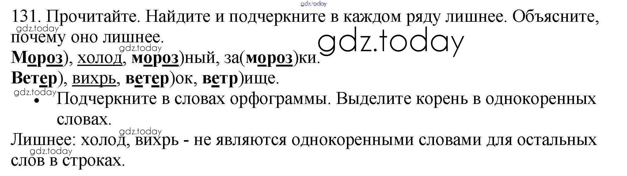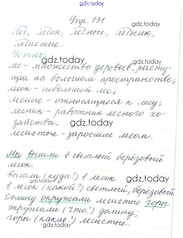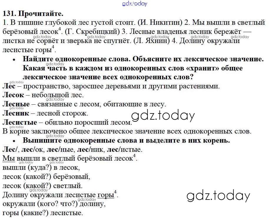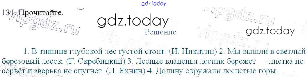 На страницах сайта gdz.today вы найдете учебный и вспомогательный материал, направленный на улучшения знаний школьной программы. ГДЗ - онлайн мир знаний Упражнения Часть 1 131 Учебнику по Русскому языку для 3 класса Канакина, Горецкий Просвещение Школа России 2013