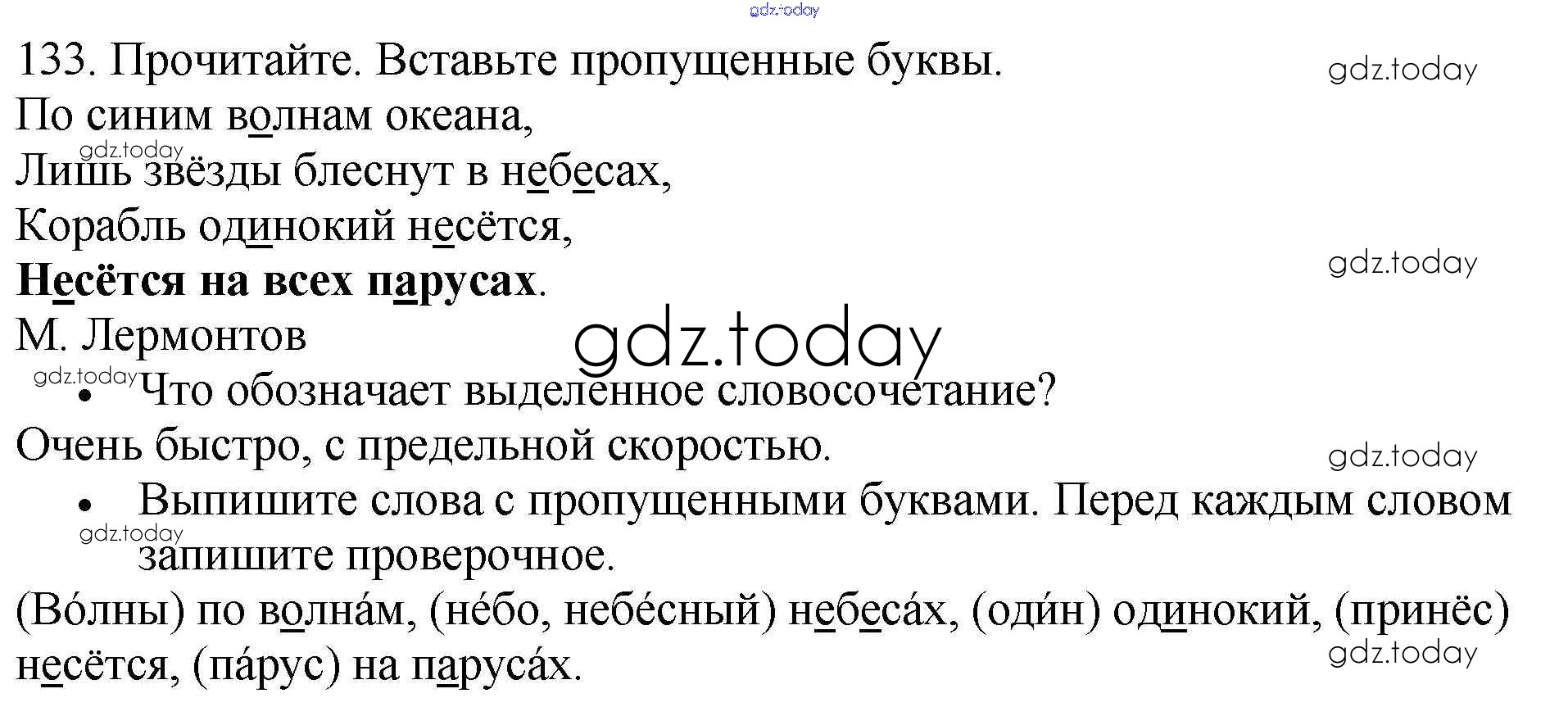 На страницах сайта gdz.today вы найдете учебный и вспомогательный материал, направленный на улучшения знаний школьной программы. ГДЗ - онлайн мир знаний Упражнения Часть 1 133 Учебнику по Русскому языку для 3 класса Канакина, Горецкий Просвещение Школа России 2013