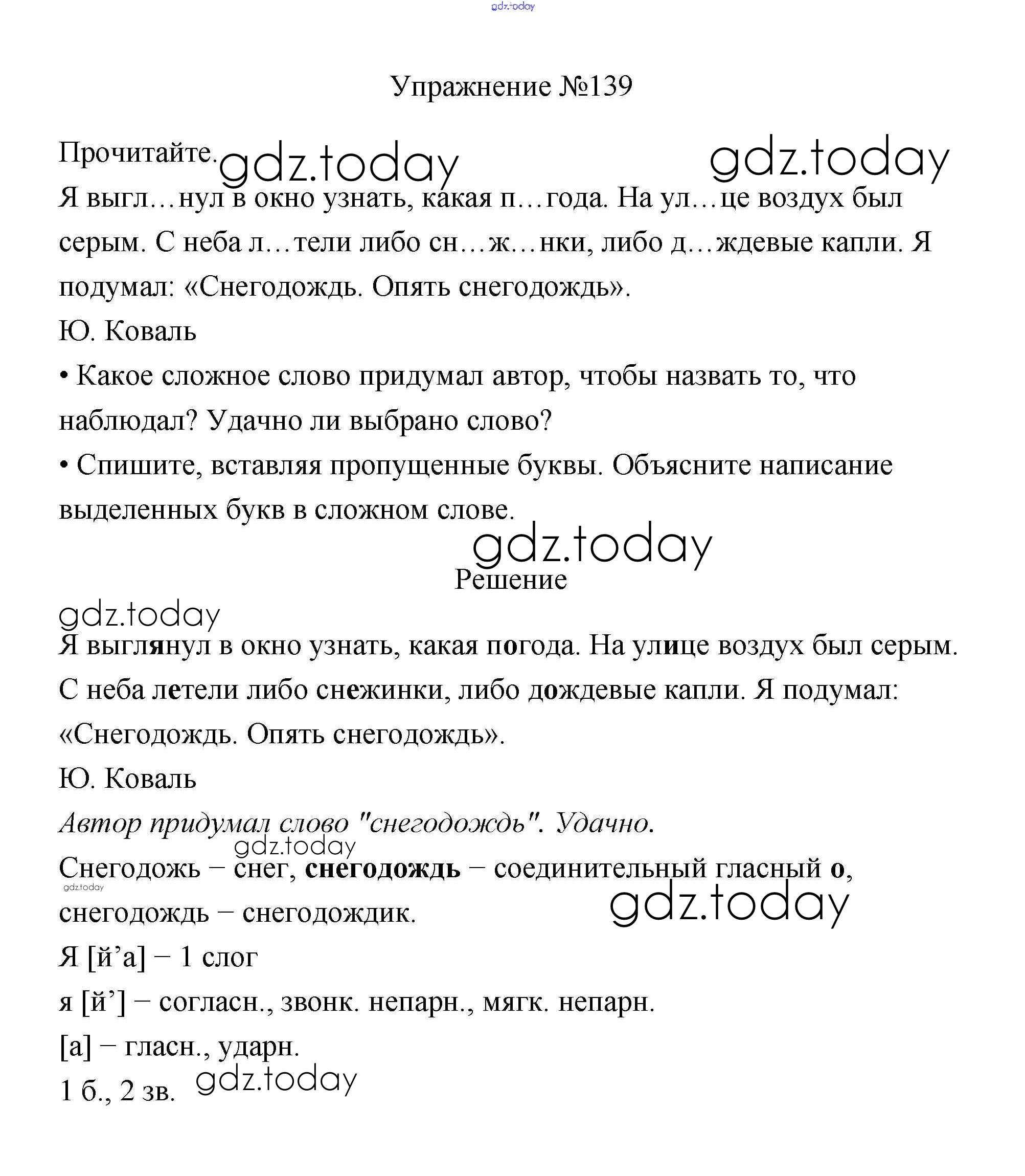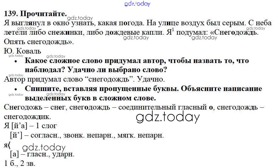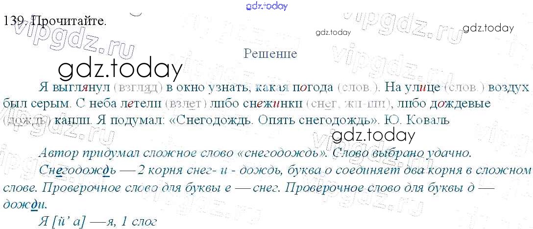 На страницах сайта gdz.today вы найдете учебный и вспомогательный материал, направленный на улучшения знаний школьной программы. ГДЗ - онлайн мир знаний Упражнения Часть 1 139 Учебнику по Русскому языку для 3 класса Канакина, Горецкий Просвещение Школа России 2013