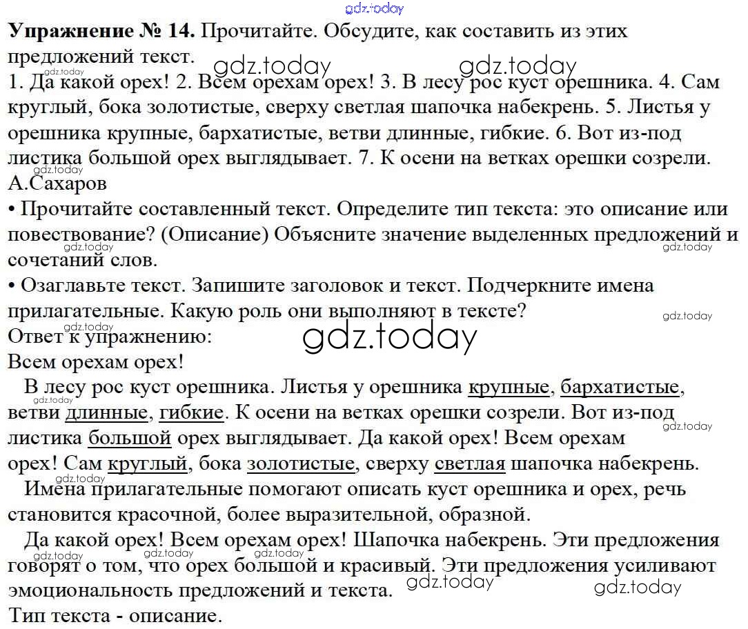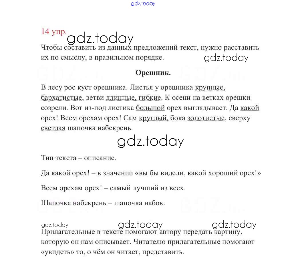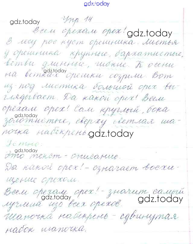 На страницах сайта gdz.today вы найдете учебный и вспомогательный материал, направленный на улучшения знаний школьной программы. ГДЗ - онлайн мир знаний Упражнения Часть 1 14 Учебнику по Русскому языку для 3 класса Канакина, Горецкий Просвещение Школа России 2013