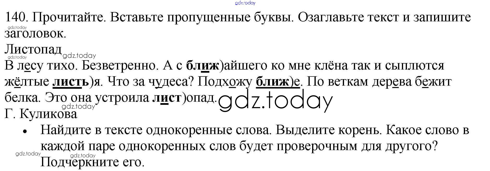 На страницах сайта gdz.today вы найдете учебный и вспомогательный материал, направленный на улучшения знаний школьной программы. ГДЗ - онлайн мир знаний Упражнения Часть 1 140 Учебнику по Русскому языку для 3 класса Канакина, Горецкий Просвещение Школа России 2013