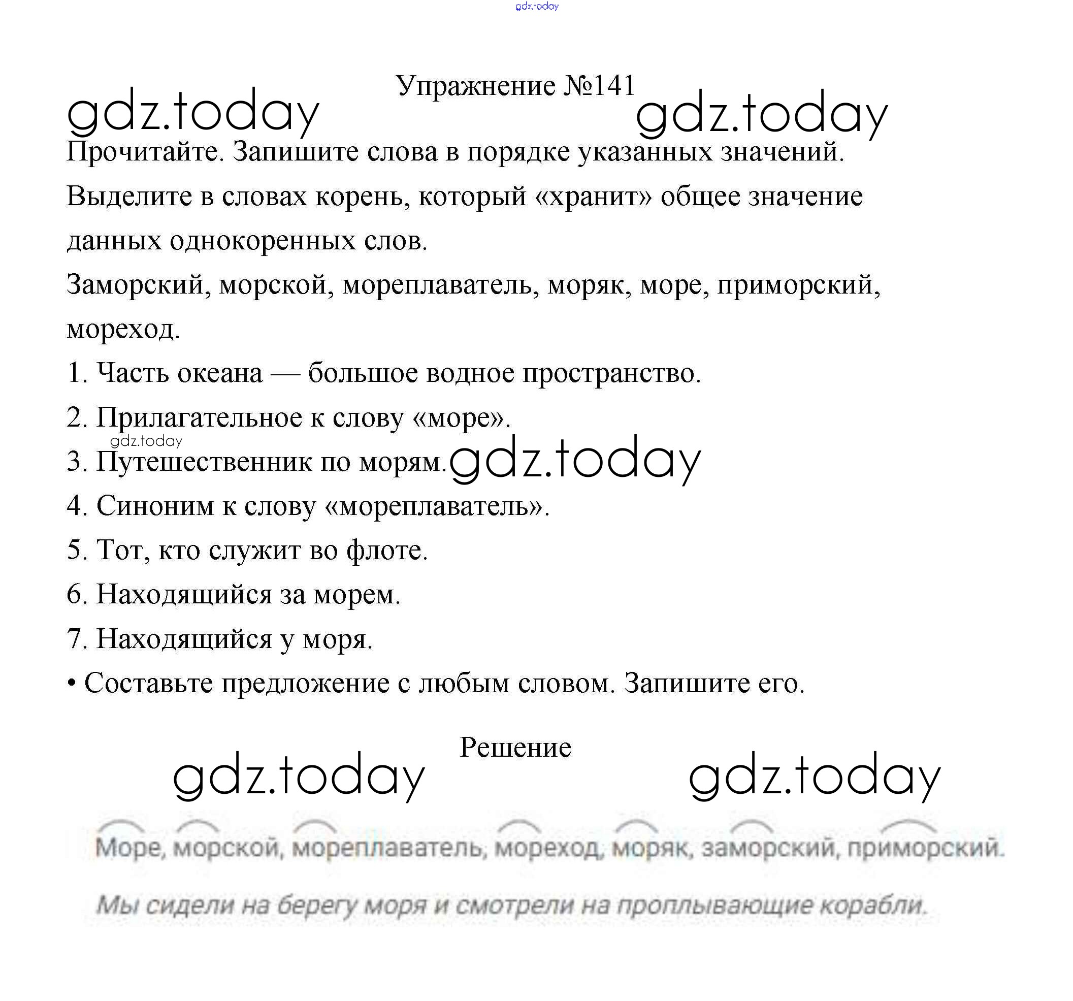 На страницах сайта gdz.today вы найдете учебный и вспомогательный материал, направленный на улучшения знаний школьной программы. ГДЗ - онлайн мир знаний Упражнения Часть 1 141 Учебнику по Русскому языку для 3 класса Канакина, Горецкий Просвещение Школа России 2013