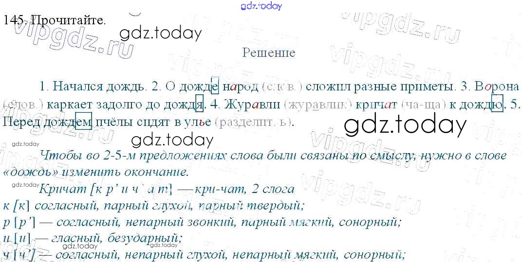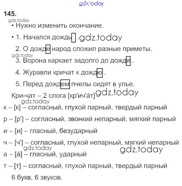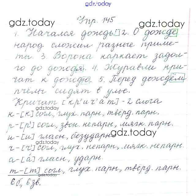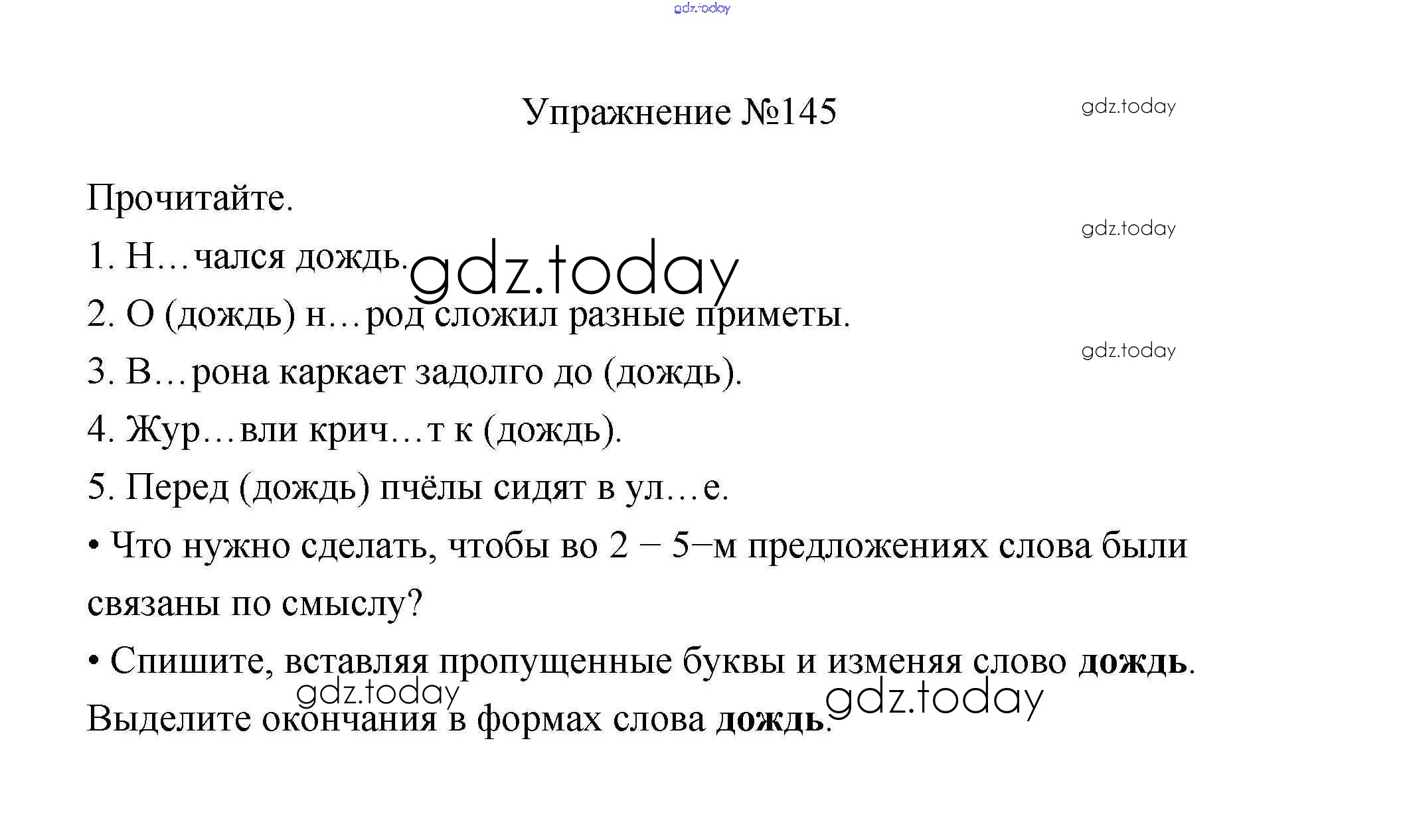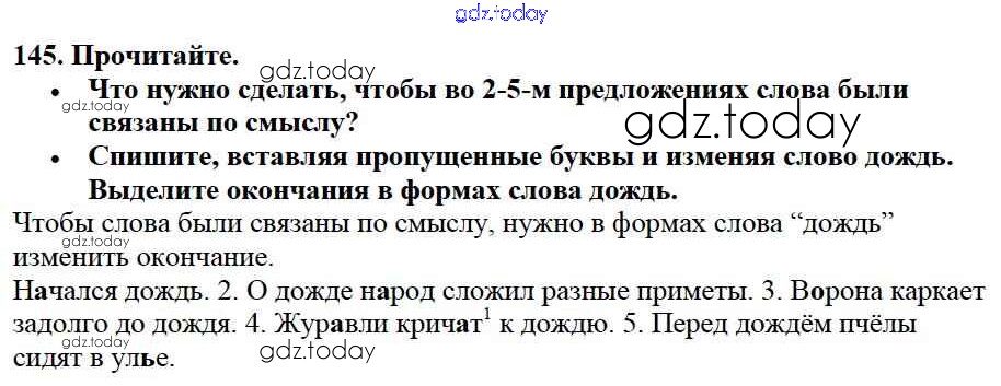 На страницах сайта gdz.today вы найдете учебный и вспомогательный материал, направленный на улучшения знаний школьной программы. ГДЗ - онлайн мир знаний Упражнения Часть 1 145 Учебнику по Русскому языку для 3 класса Канакина, Горецкий Просвещение Школа России 2013