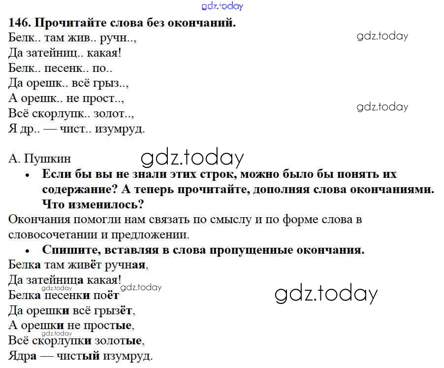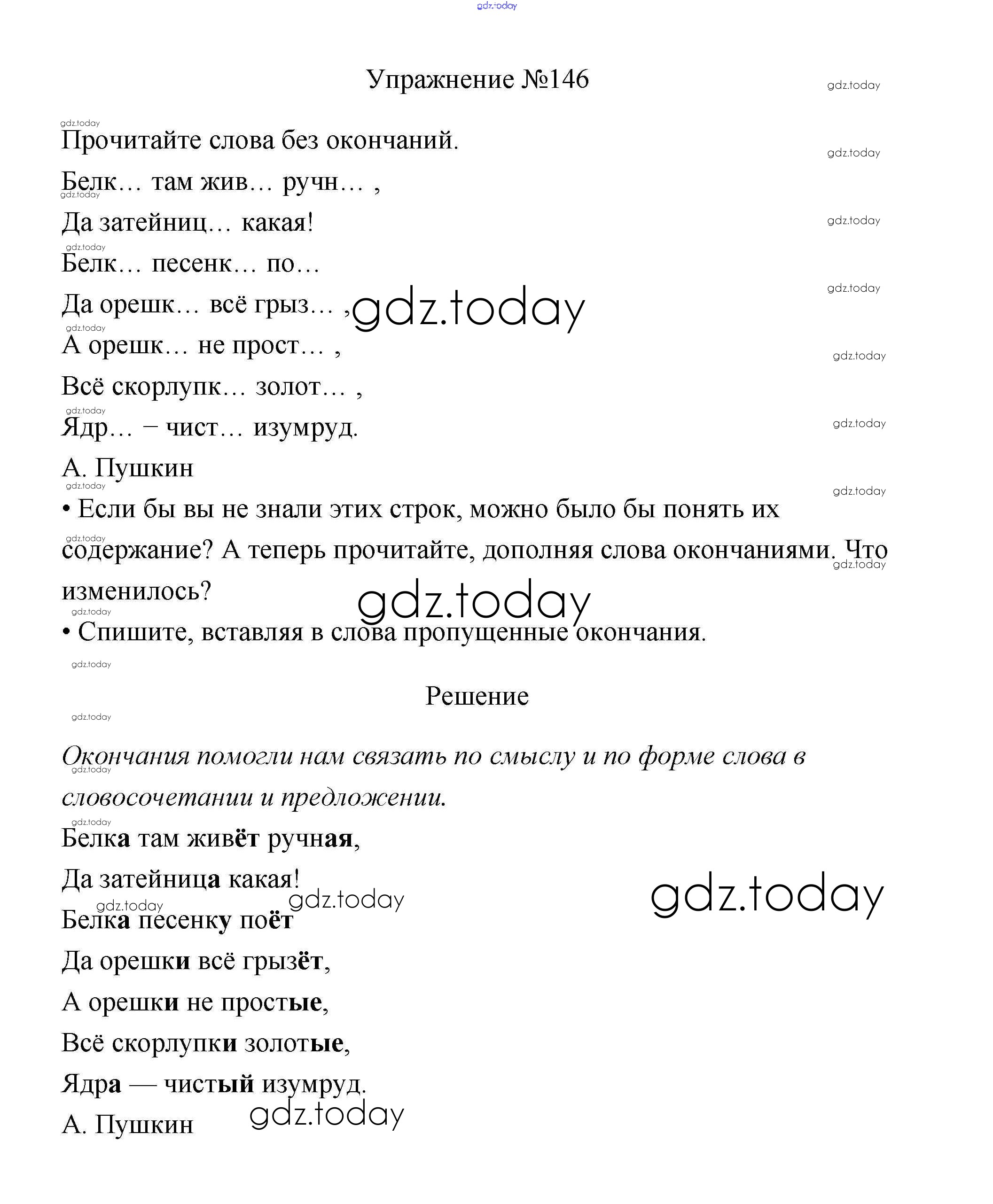 На страницах сайта gdz.today вы найдете учебный и вспомогательный материал, направленный на улучшения знаний школьной программы. ГДЗ - онлайн мир знаний Упражнения Часть 1 146 Учебнику по Русскому языку для 3 класса Канакина, Горецкий Просвещение Школа России 2013