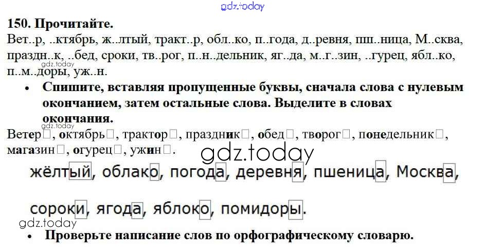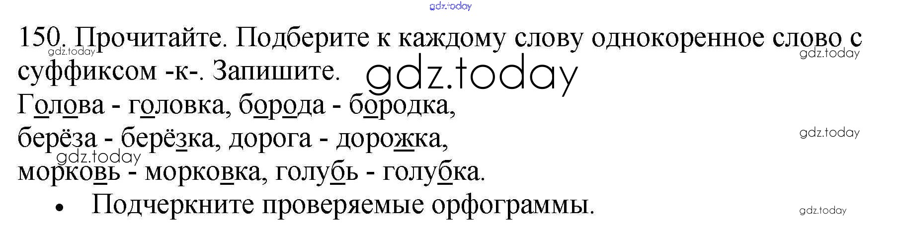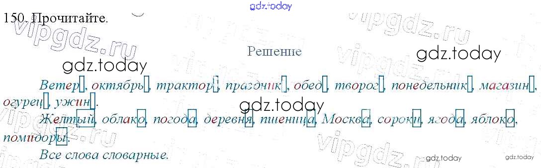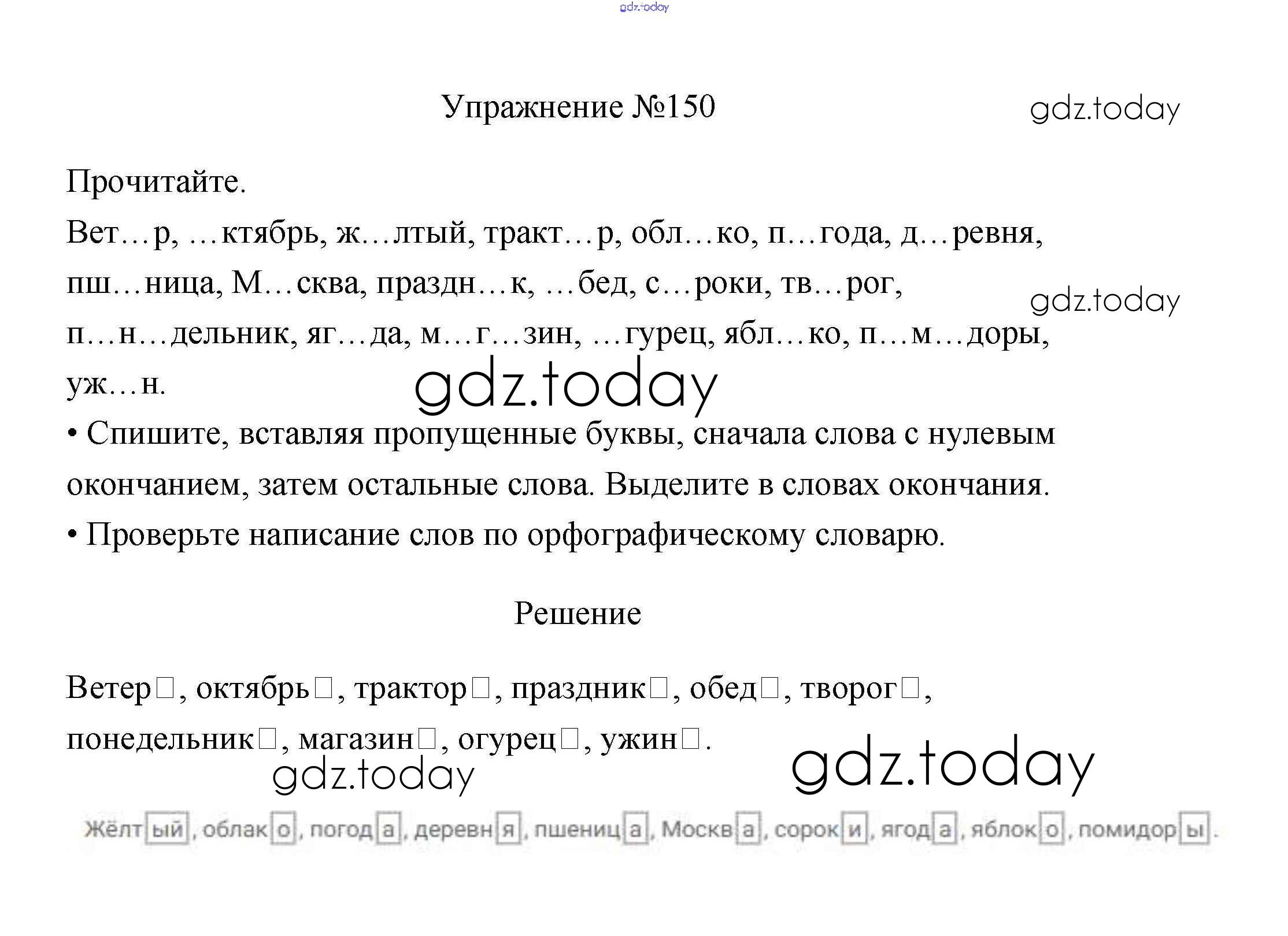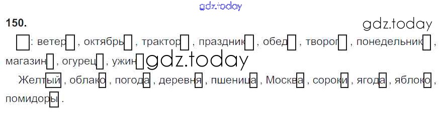 На страницах сайта gdz.today вы найдете учебный и вспомогательный материал, направленный на улучшения знаний школьной программы. ГДЗ - онлайн мир знаний Упражнения Часть 1 150 Учебнику по Русскому языку для 3 класса Канакина, Горецкий Просвещение Школа России 2013