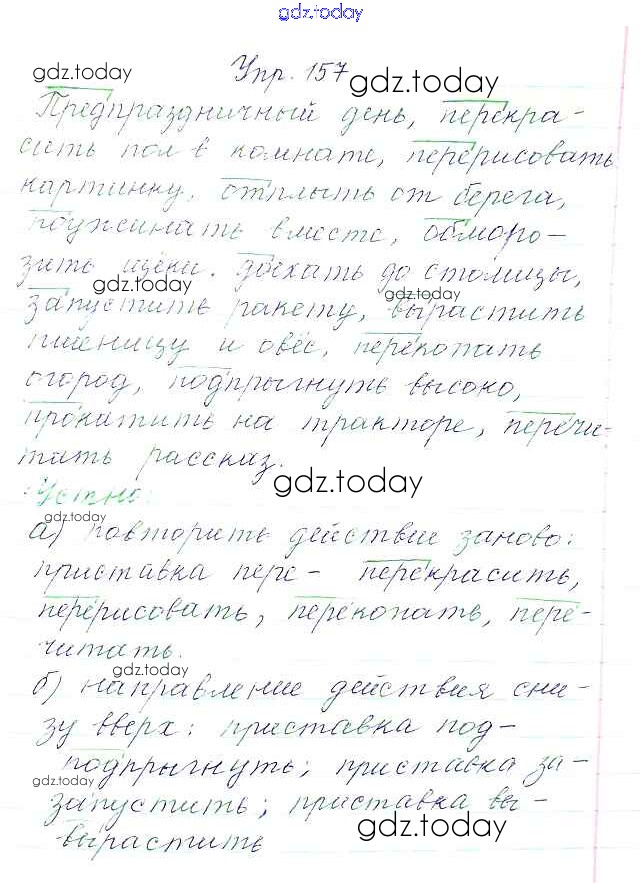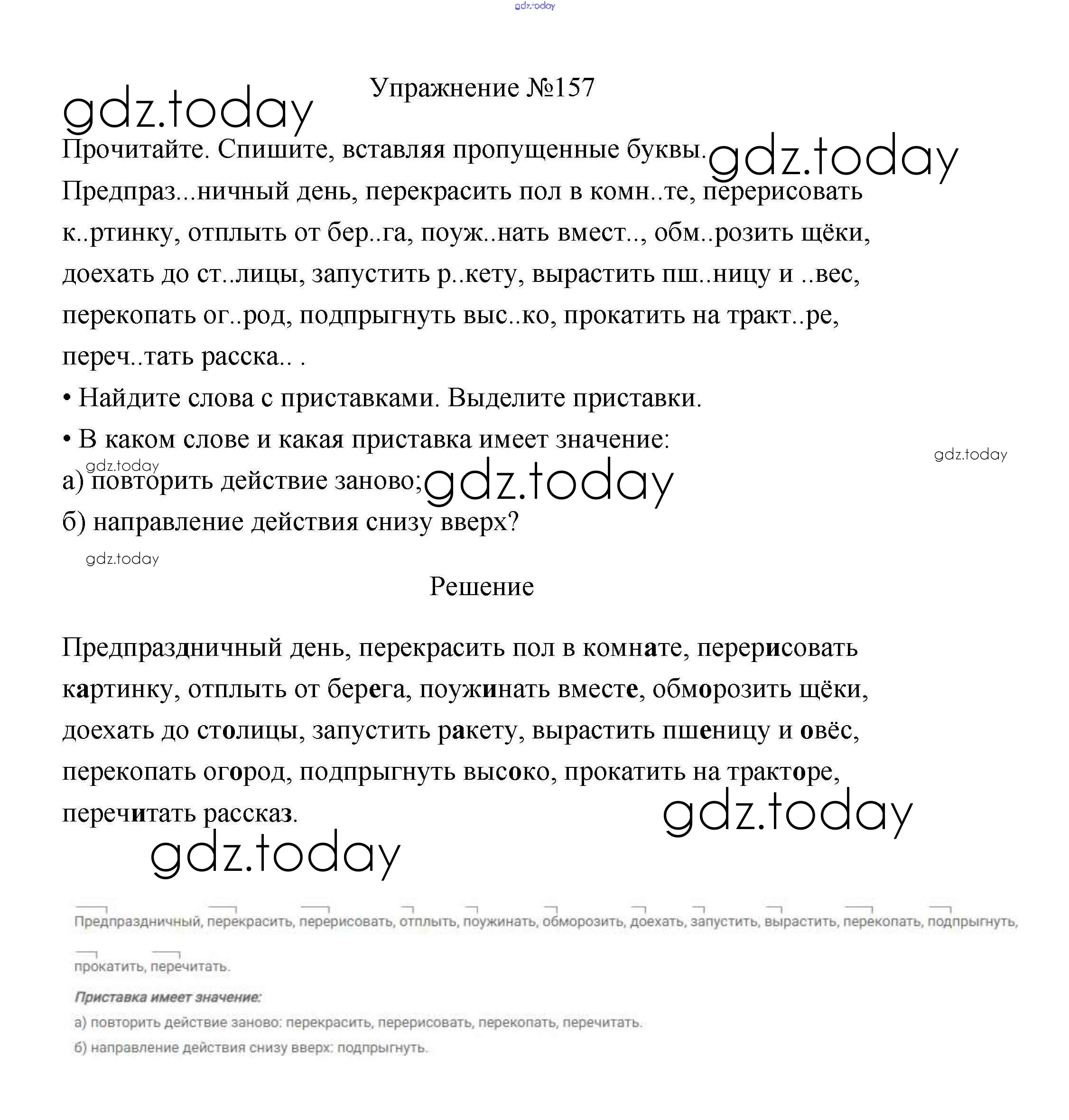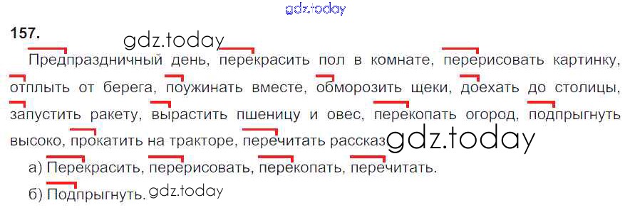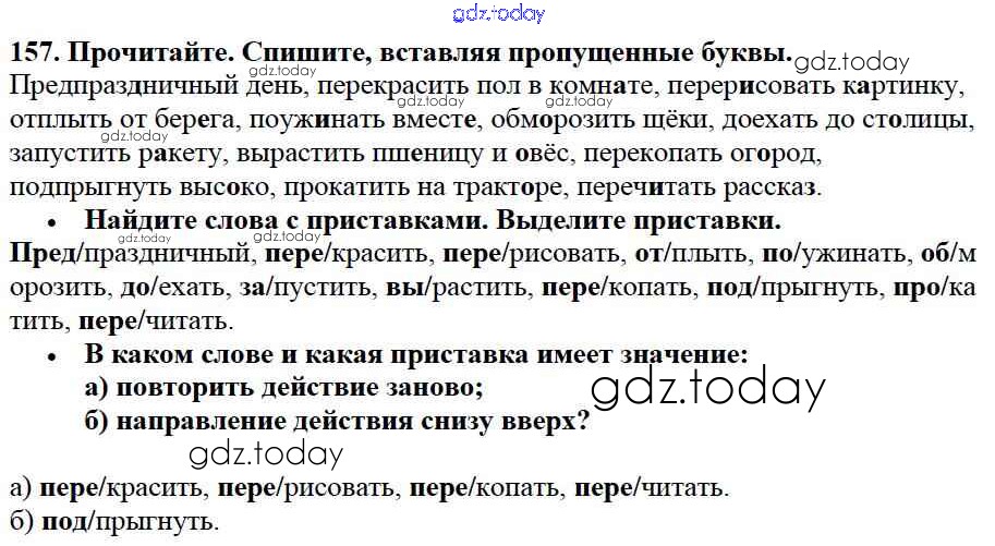 На страницах сайта gdz.today вы найдете учебный и вспомогательный материал, направленный на улучшения знаний школьной программы. ГДЗ - онлайн мир знаний Упражнения Часть 1 157 Учебнику по Русскому языку для 3 класса Канакина, Горецкий Просвещение Школа России 2013