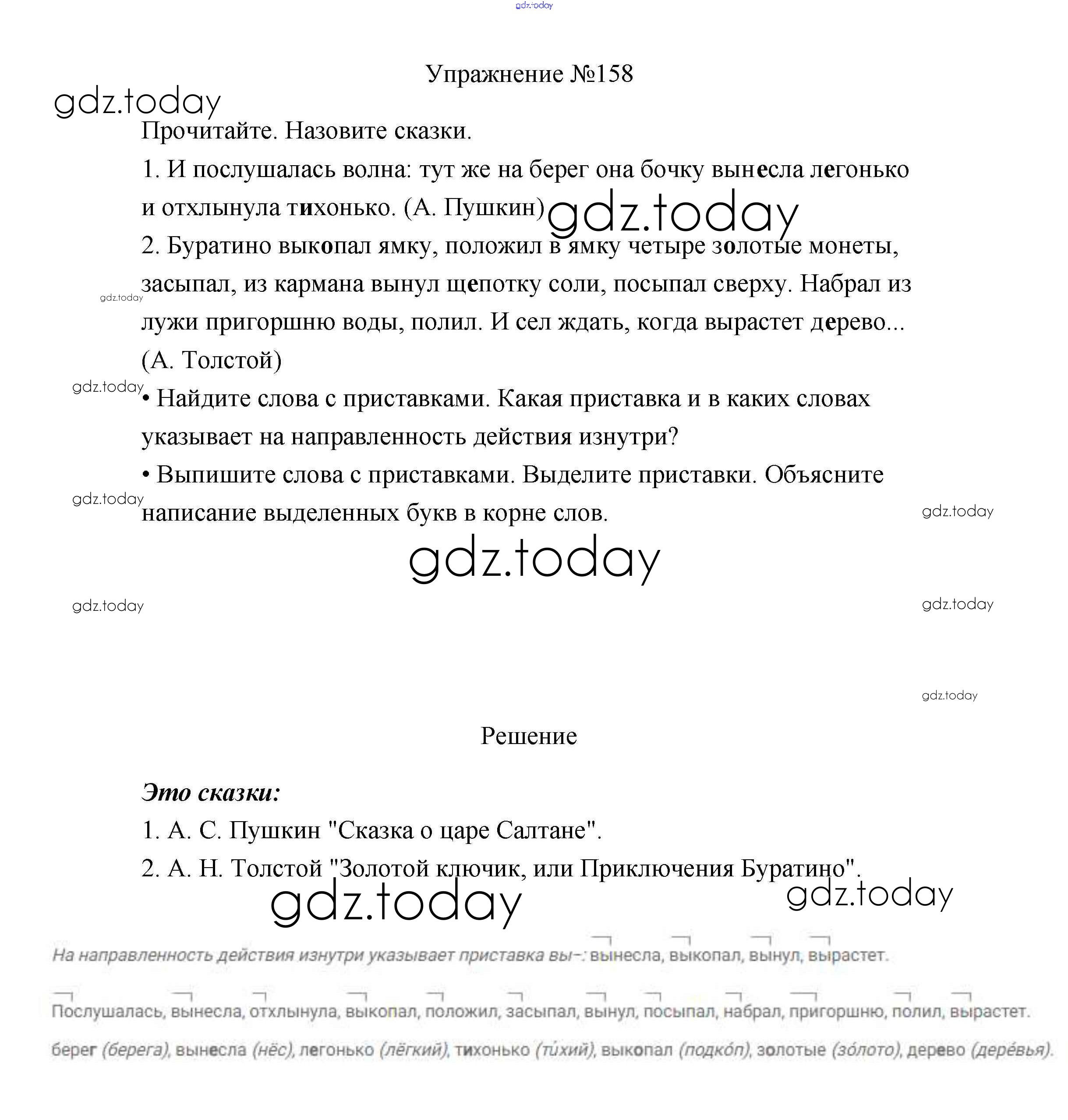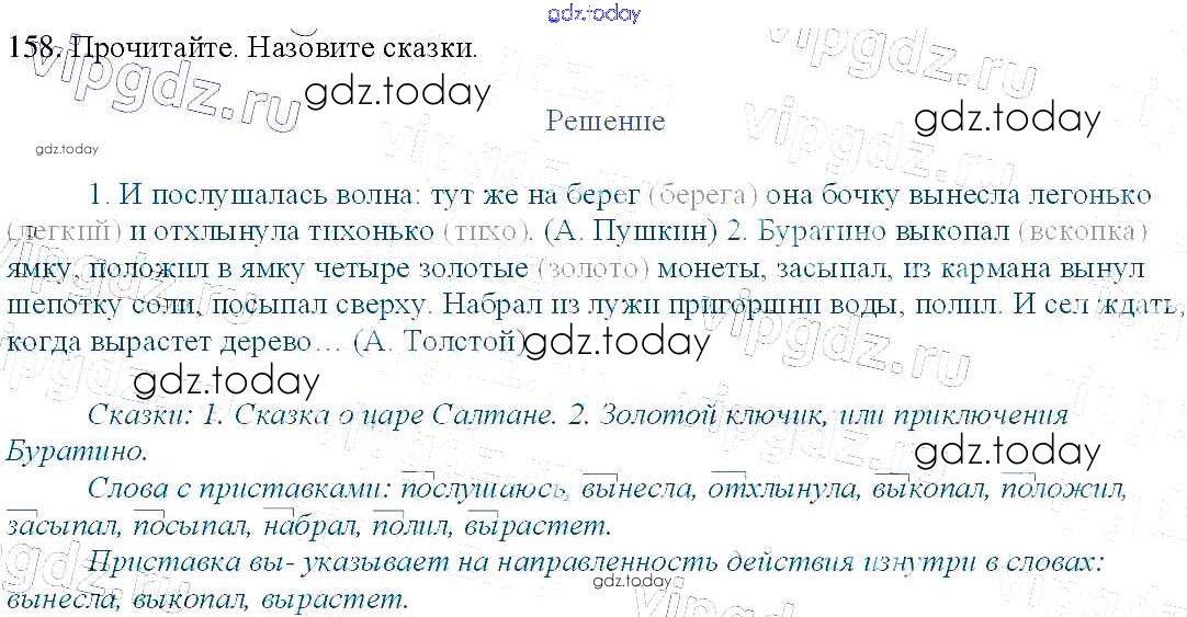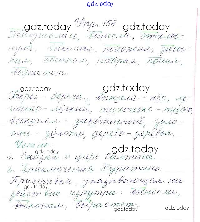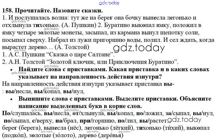 Ответы к Упражнения Часть 1 158 Учебнику по Русскому языку для 3 класса Канакина, Горецкий Просвещение Школа России 2013
