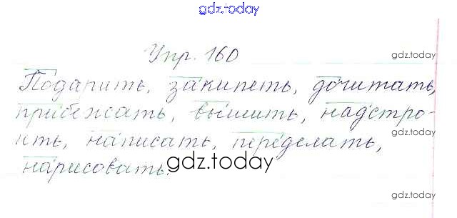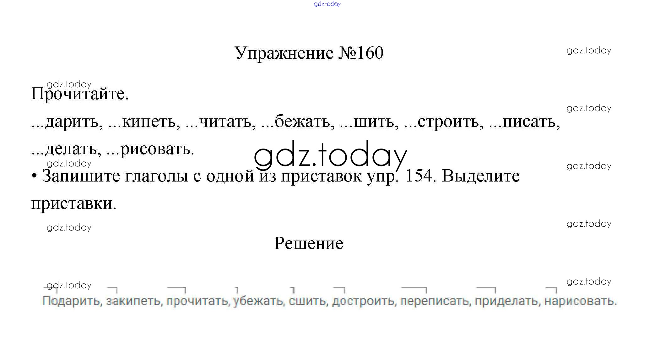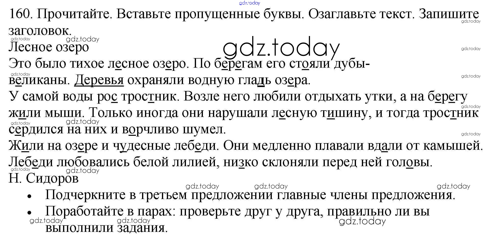 На страницах сайта gdz.today вы найдете учебный и вспомогательный материал, направленный на улучшения знаний школьной программы. ГДЗ - онлайн мир знаний Упражнения Часть 1 160 Учебнику по Русскому языку для 3 класса Канакина, Горецкий Просвещение Школа России 2013