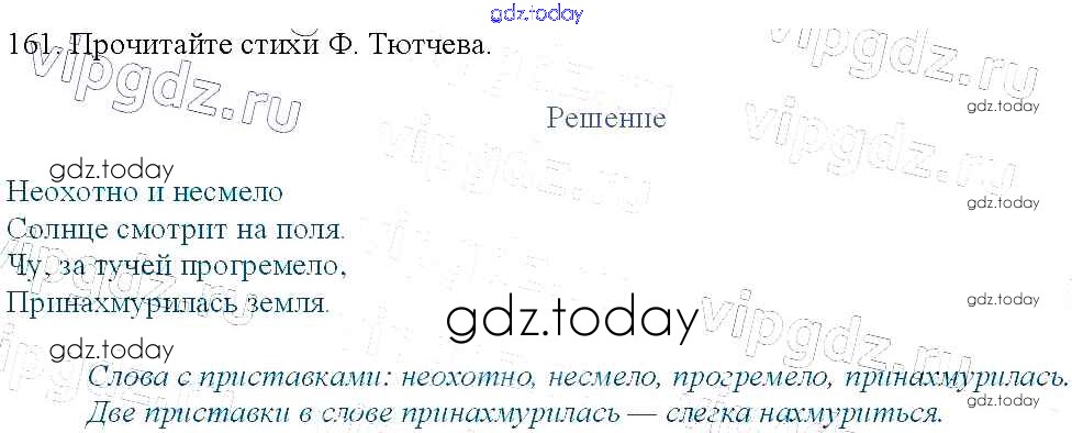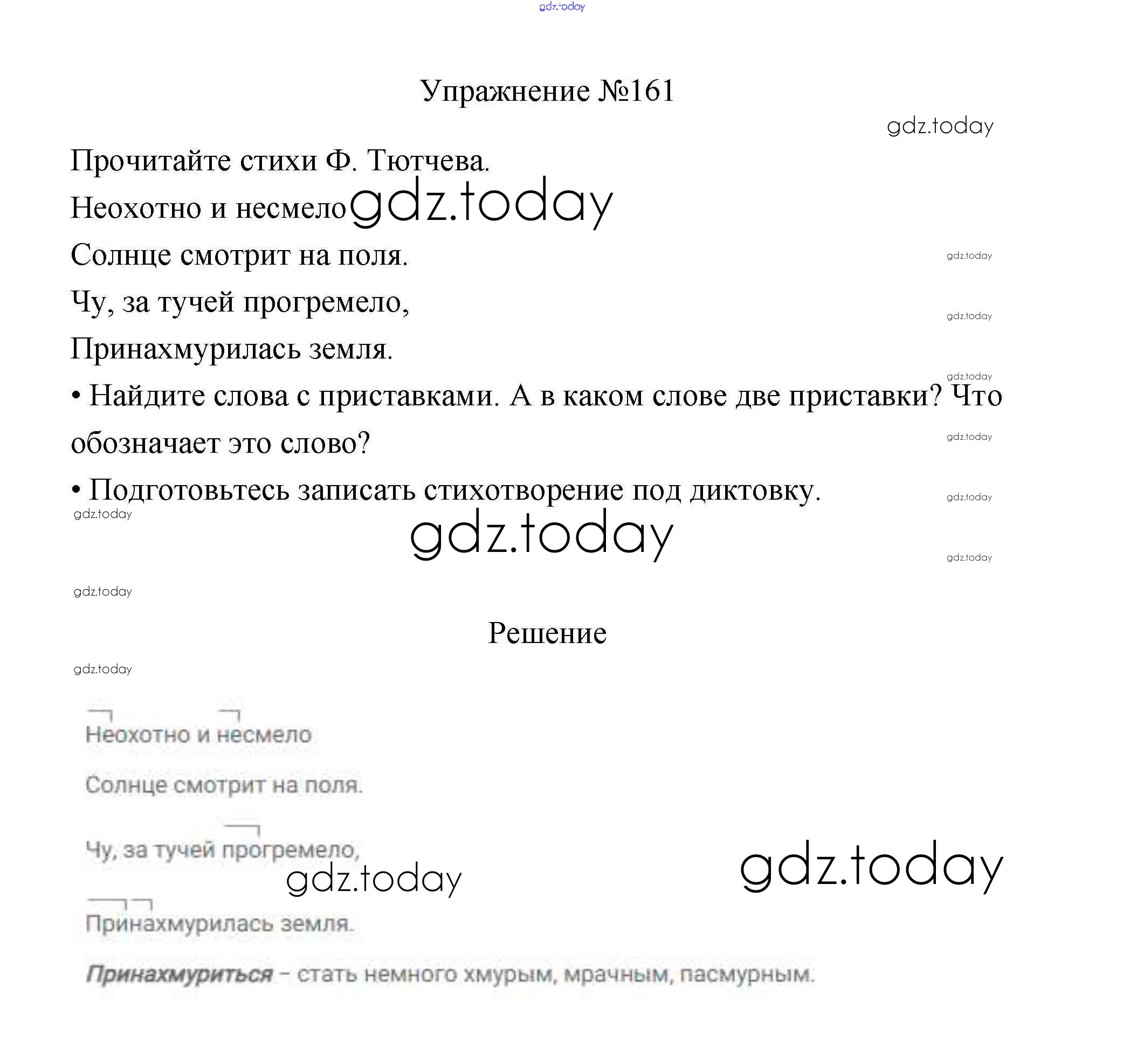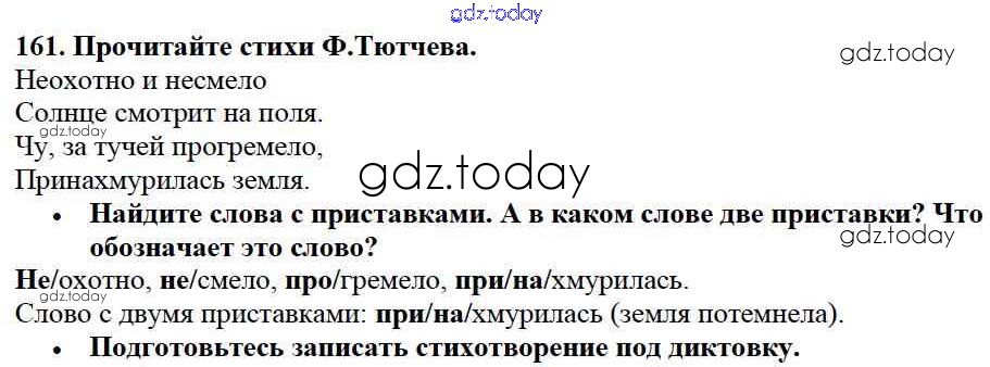 На страницах сайта gdz.today вы найдете учебный и вспомогательный материал, направленный на улучшения знаний школьной программы. ГДЗ - онлайн мир знаний Упражнения Часть 1 161 Учебнику по Русскому языку для 3 класса Канакина, Горецкий Просвещение Школа России 2013