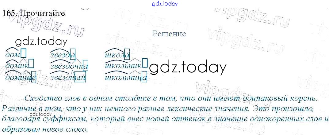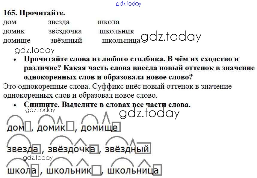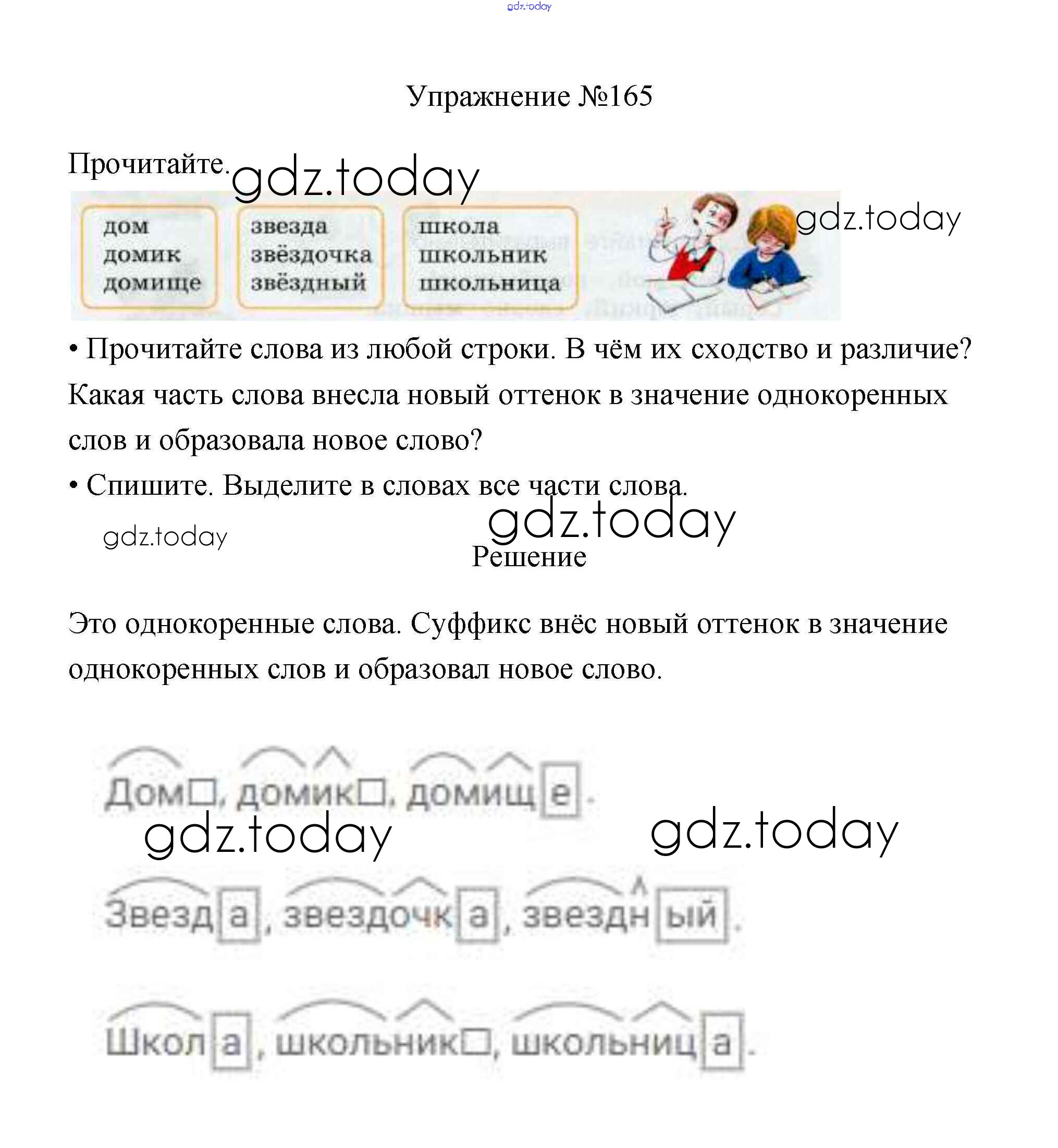 На страницах сайта gdz.today вы найдете учебный и вспомогательный материал, направленный на улучшения знаний школьной программы. ГДЗ - онлайн мир знаний Упражнения Часть 1 165 Учебнику по Русскому языку для 3 класса Канакина, Горецкий Просвещение Школа России 2013