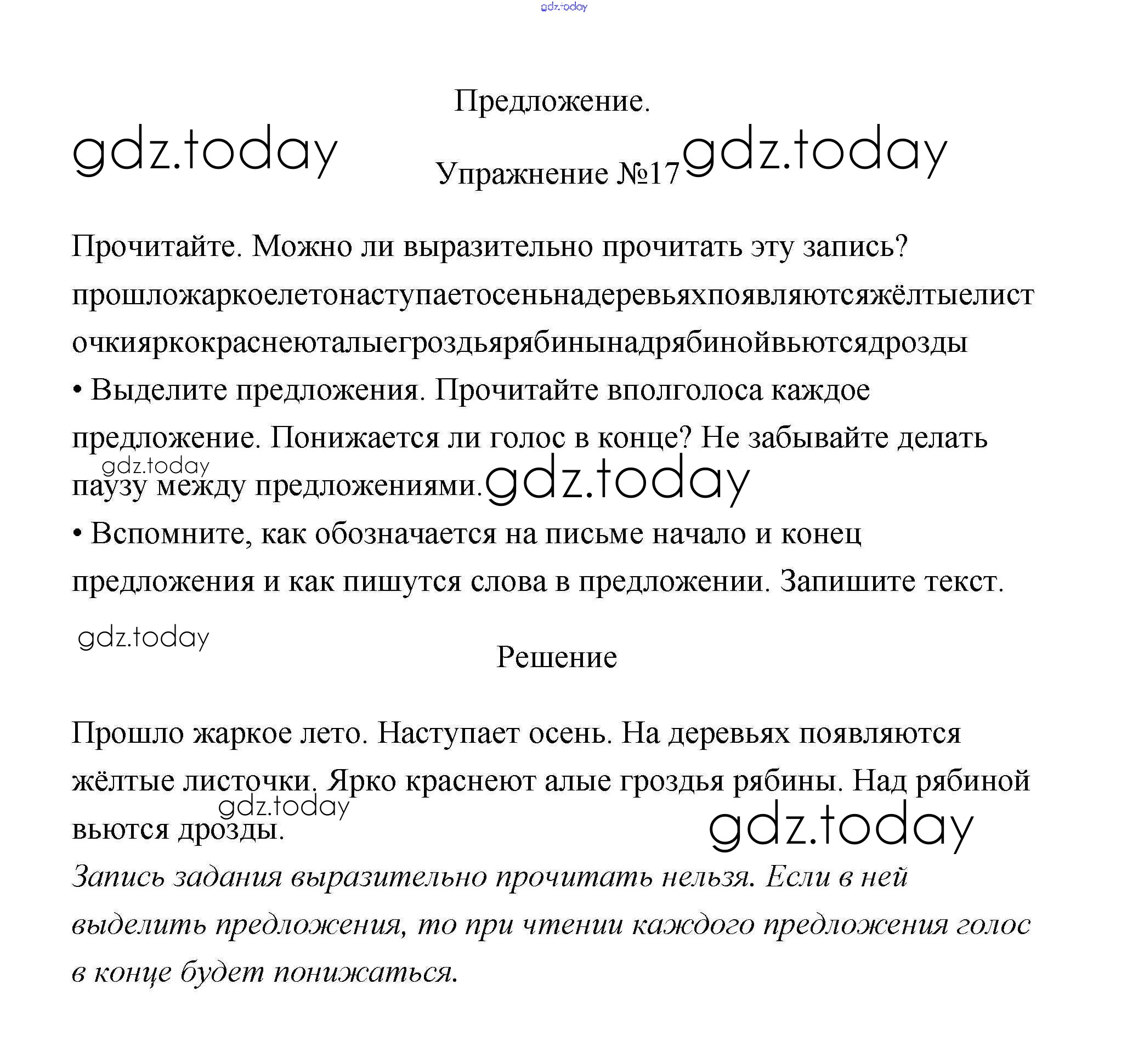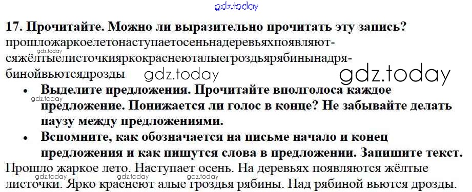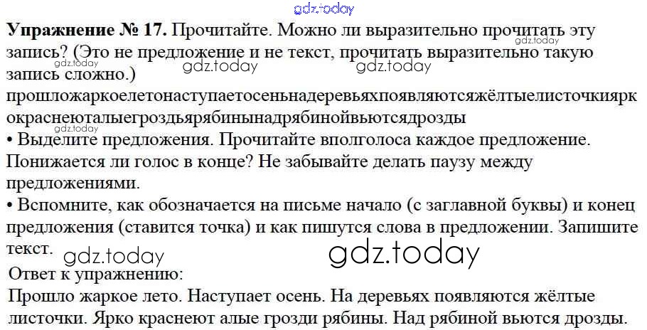 На страницах сайта gdz.today вы найдете учебный и вспомогательный материал, направленный на улучшения знаний школьной программы. ГДЗ - онлайн мир знаний Упражнения Часть 1 17 Учебнику по Русскому языку для 3 класса Канакина, Горецкий Просвещение Школа России 2013