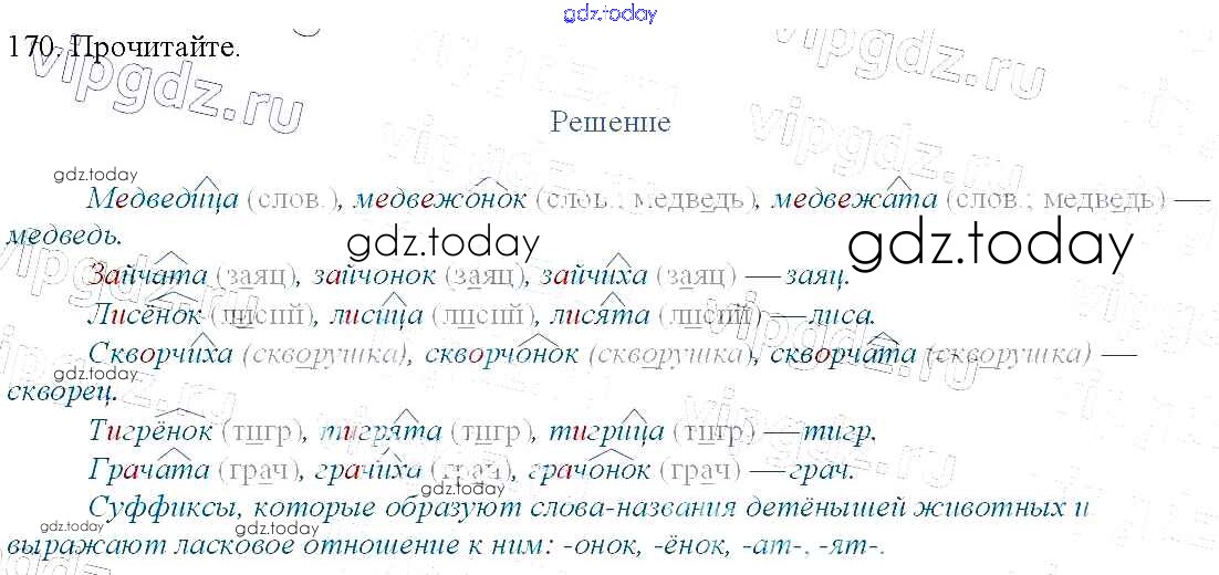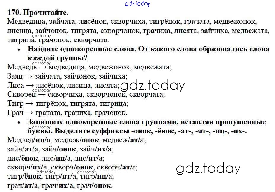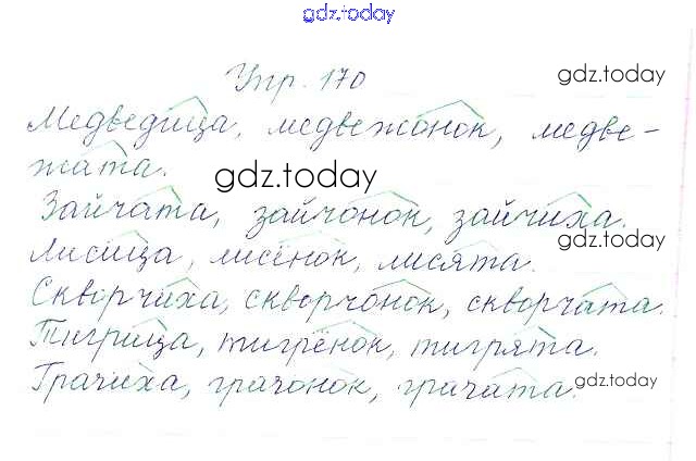 На страницах сайта gdz.today вы найдете учебный и вспомогательный материал, направленный на улучшения знаний школьной программы. ГДЗ - онлайн мир знаний Упражнения Часть 1 170 Учебнику по Русскому языку для 3 класса Канакина, Горецкий Просвещение Школа России 2013