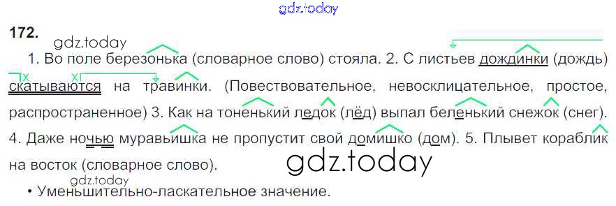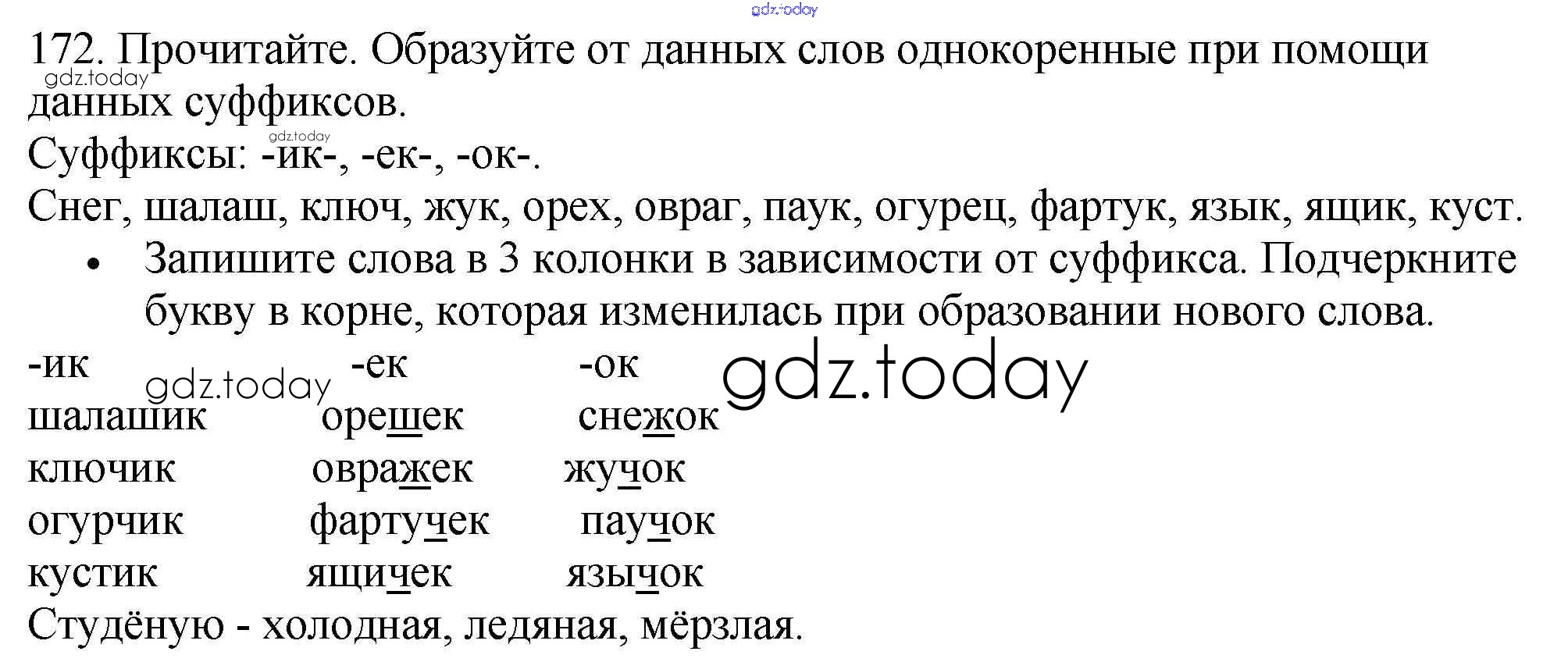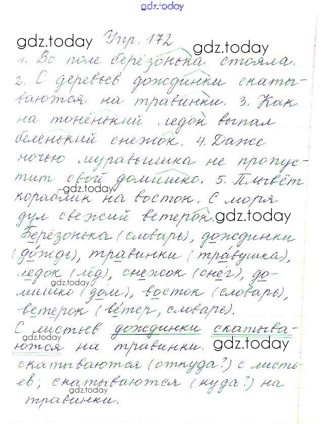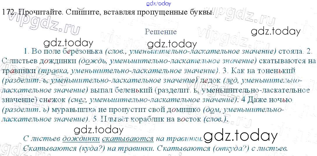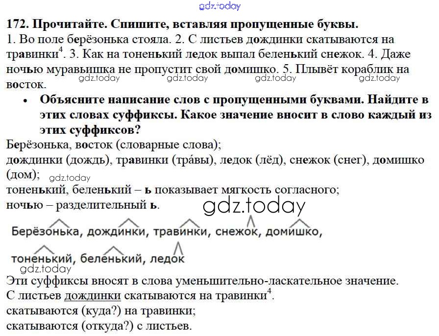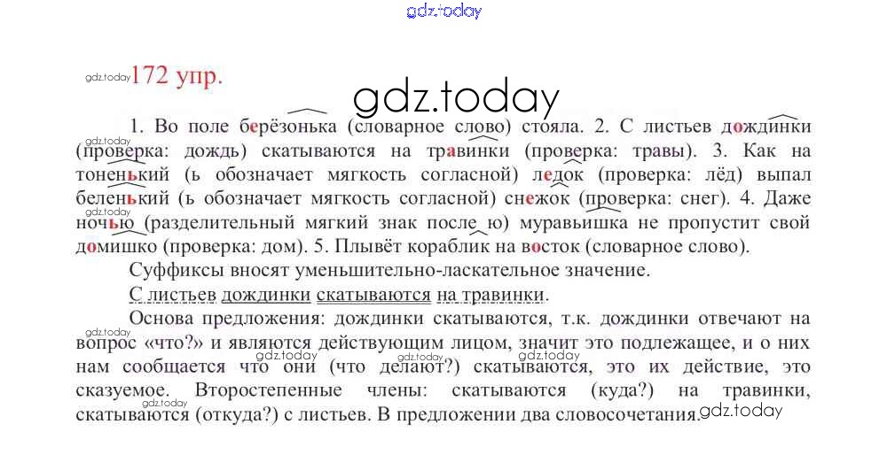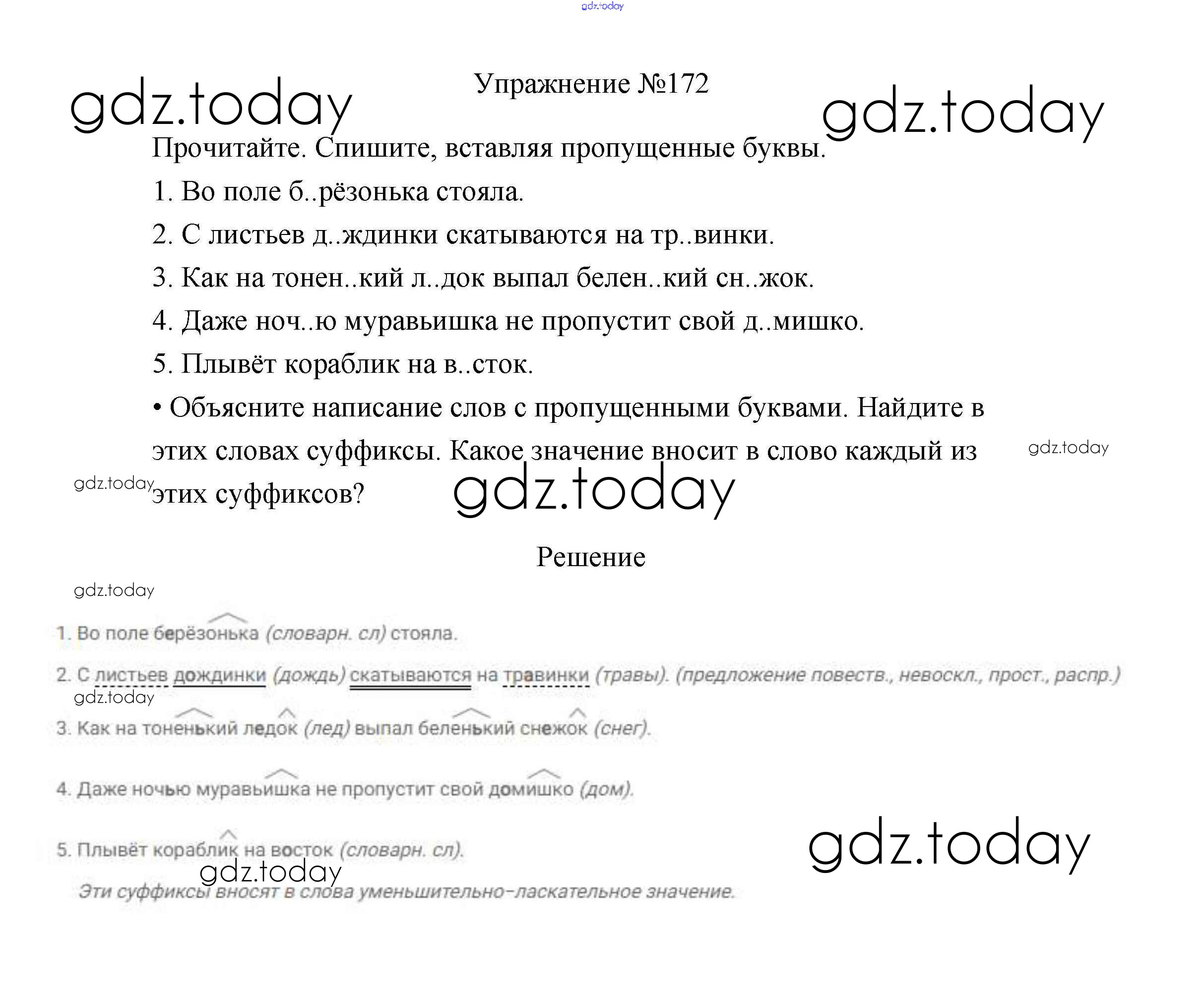 На страницах сайта gdz.today вы найдете учебный и вспомогательный материал, направленный на улучшения знаний школьной программы. ГДЗ - онлайн мир знаний Упражнения Часть 1 172 Учебнику по Русскому языку для 3 класса Канакина, Горецкий Просвещение Школа России 2013