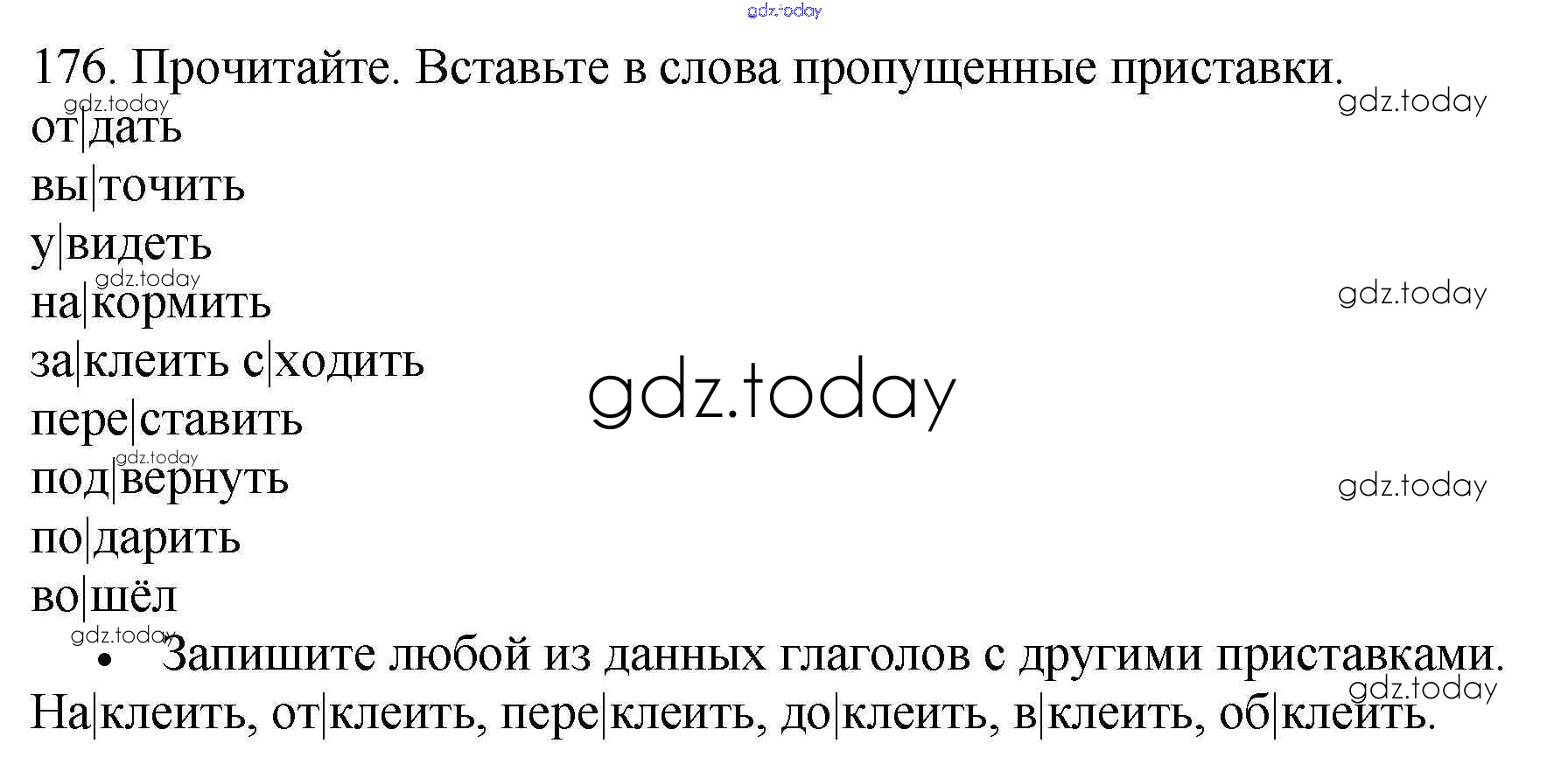 На страницах сайта gdz.today вы найдете учебный и вспомогательный материал, направленный на улучшения знаний школьной программы. ГДЗ - онлайн мир знаний Упражнения Часть 1 176 Учебнику по Русскому языку для 3 класса Канакина, Горецкий Просвещение Школа России 2013