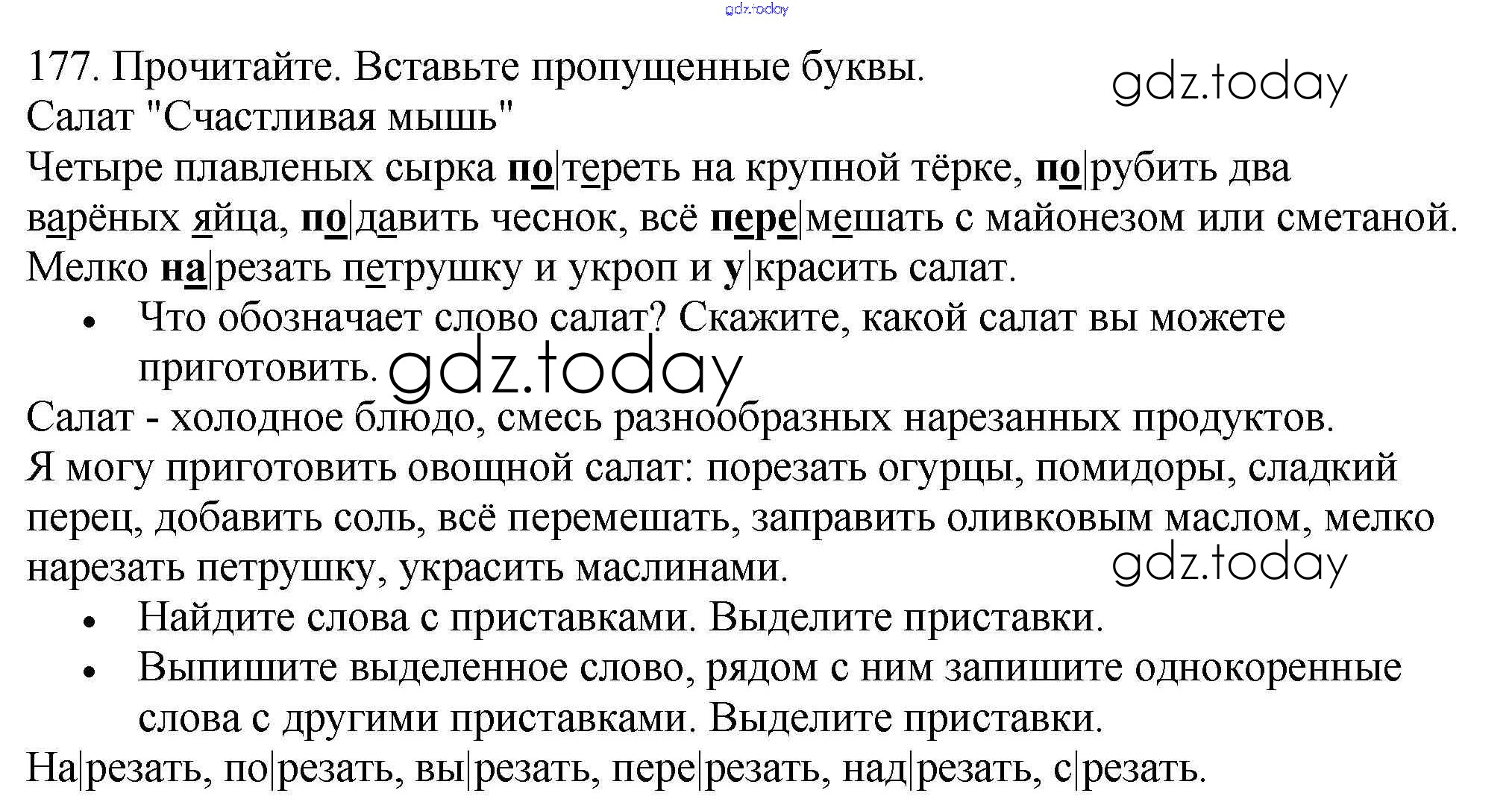 На страницах сайта gdz.today вы найдете учебный и вспомогательный материал, направленный на улучшения знаний школьной программы. ГДЗ - онлайн мир знаний Упражнения Часть 1 177 Учебнику по Русскому языку для 3 класса Канакина, Горецкий Просвещение Школа России 2013