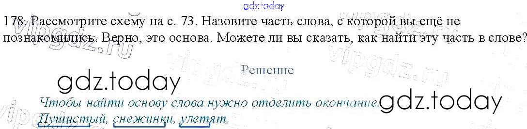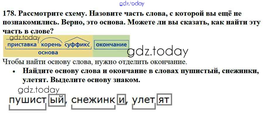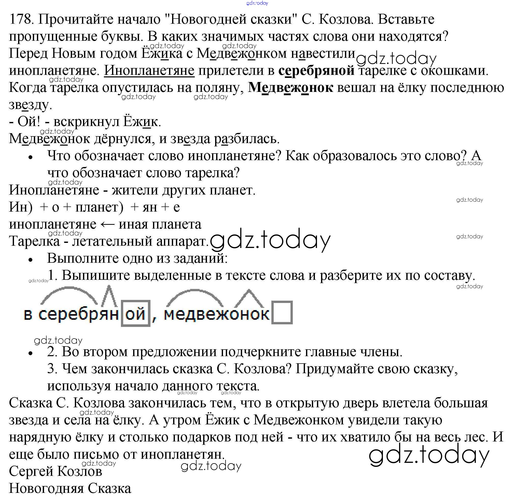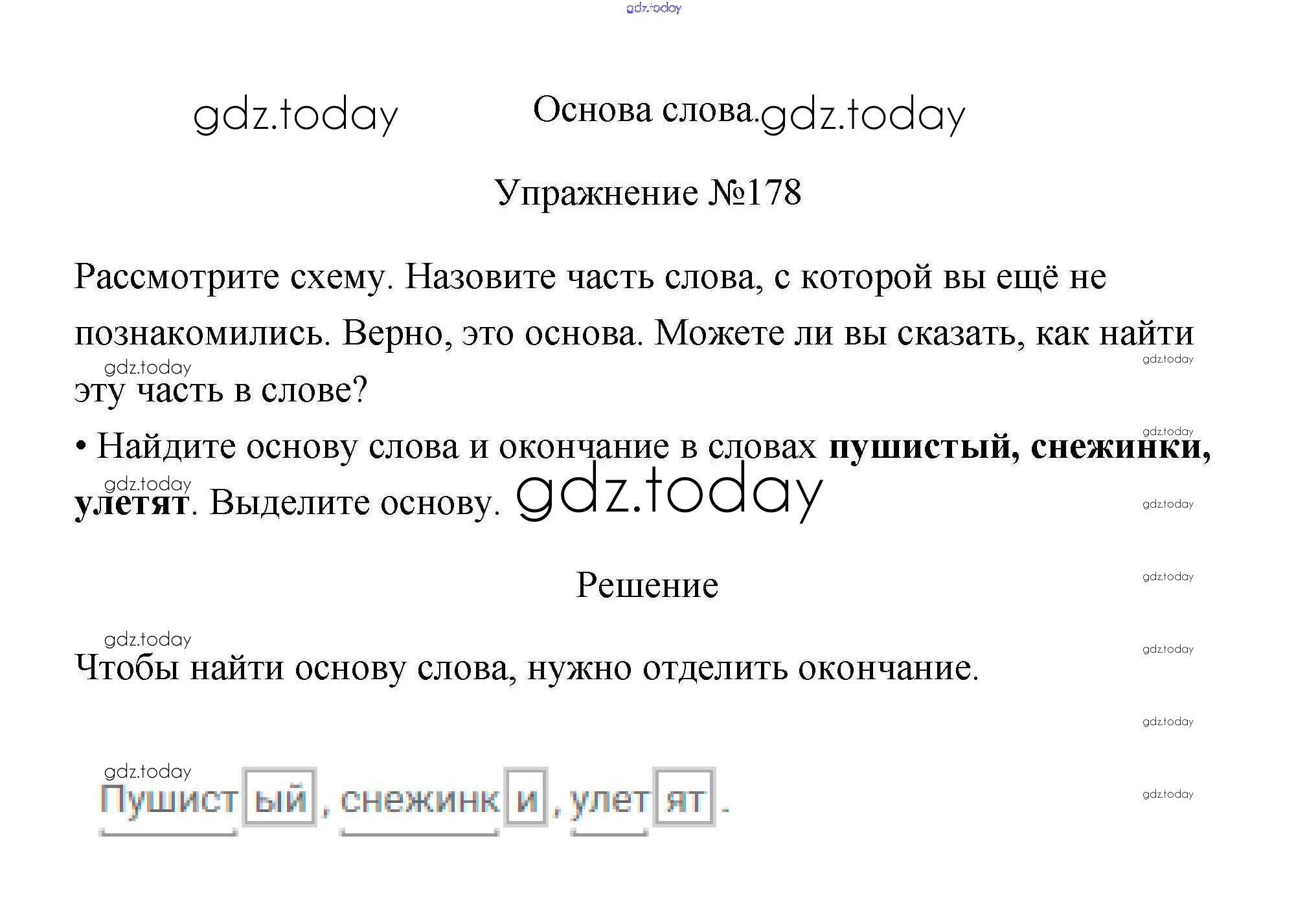 На страницах сайта gdz.today вы найдете учебный и вспомогательный материал, направленный на улучшения знаний школьной программы. ГДЗ - онлайн мир знаний Упражнения Часть 1 178 Учебнику по Русскому языку для 3 класса Канакина, Горецкий Просвещение Школа России 2013