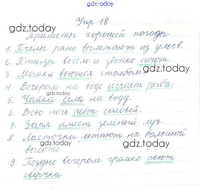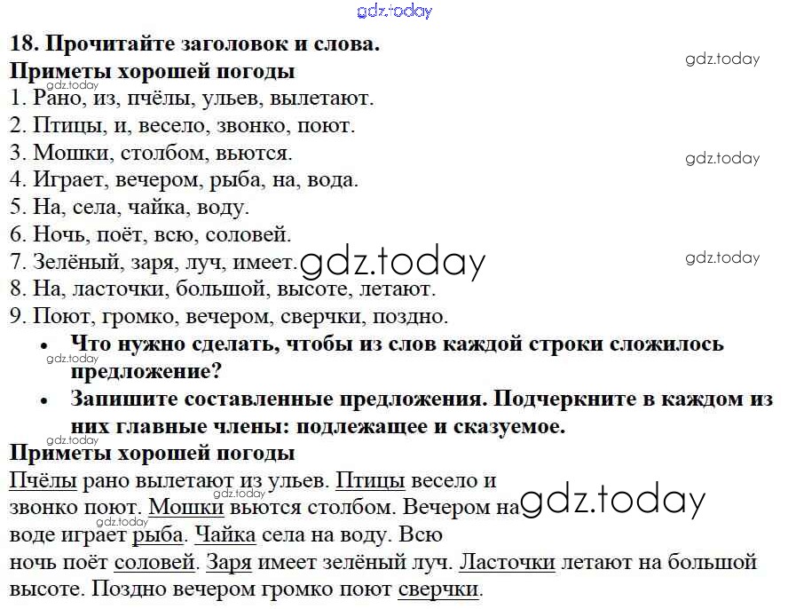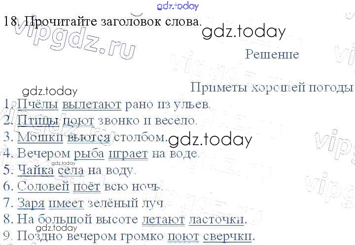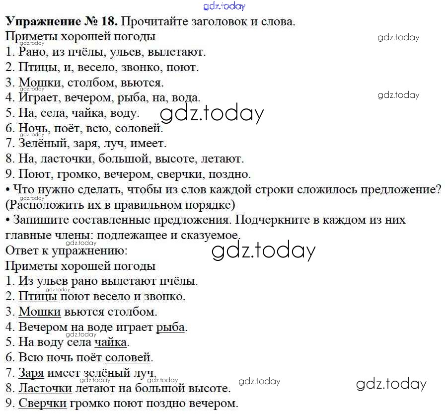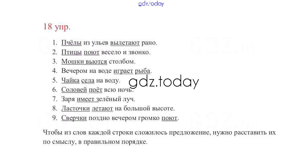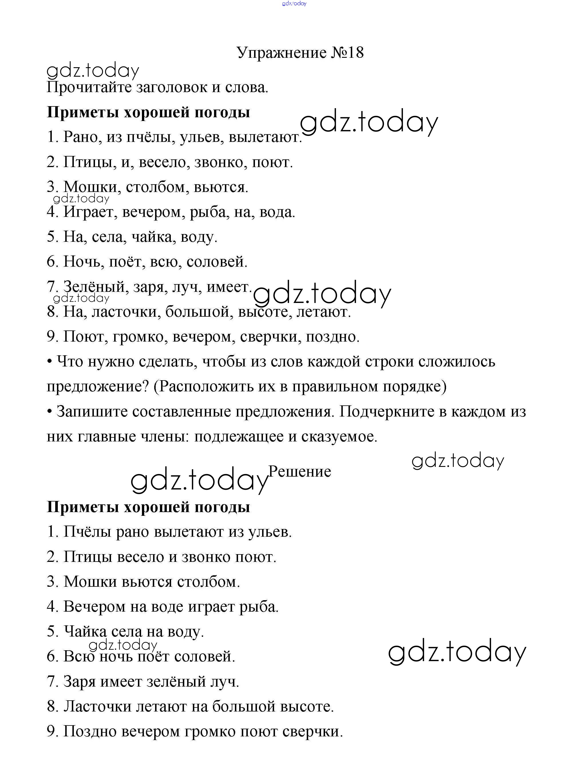 На страницах сайта gdz.today вы найдете учебный и вспомогательный материал, направленный на улучшения знаний школьной программы. ГДЗ - онлайн мир знаний Упражнения Часть 1 18 Учебнику по Русскому языку для 3 класса Канакина, Горецкий Просвещение Школа России 2013