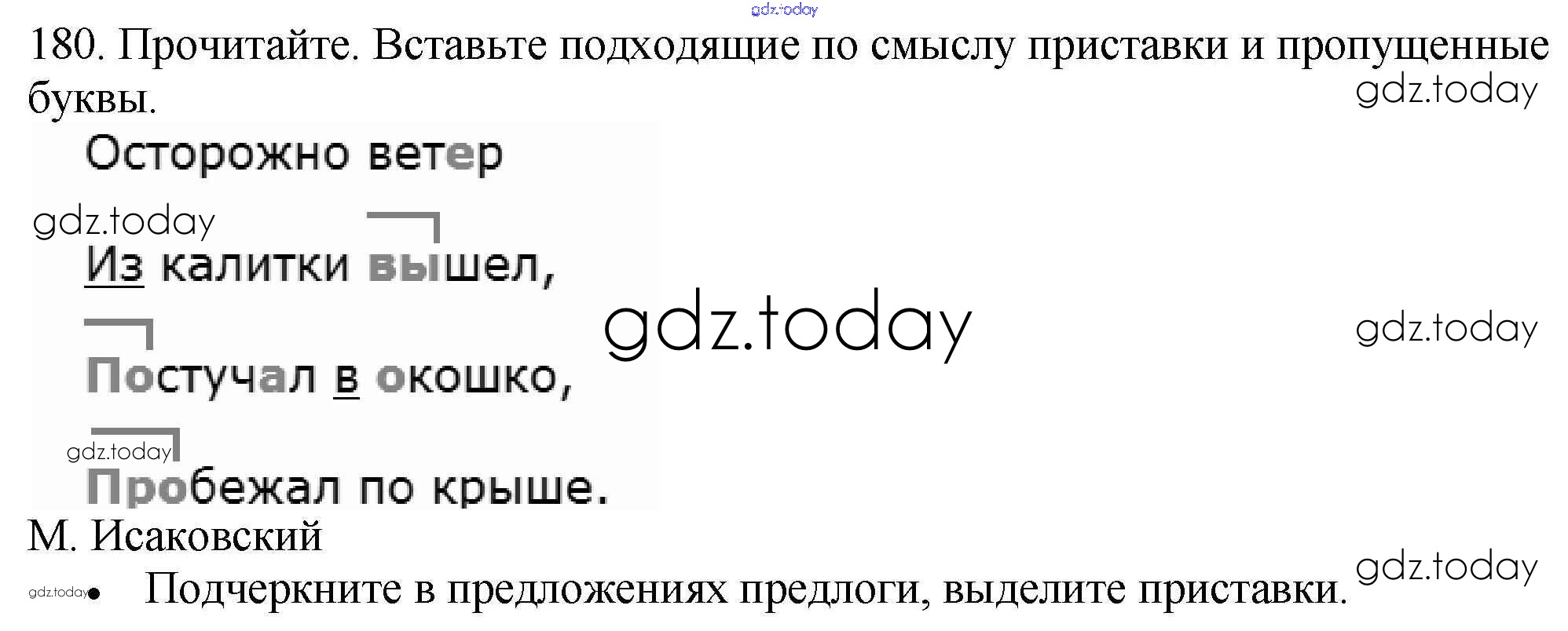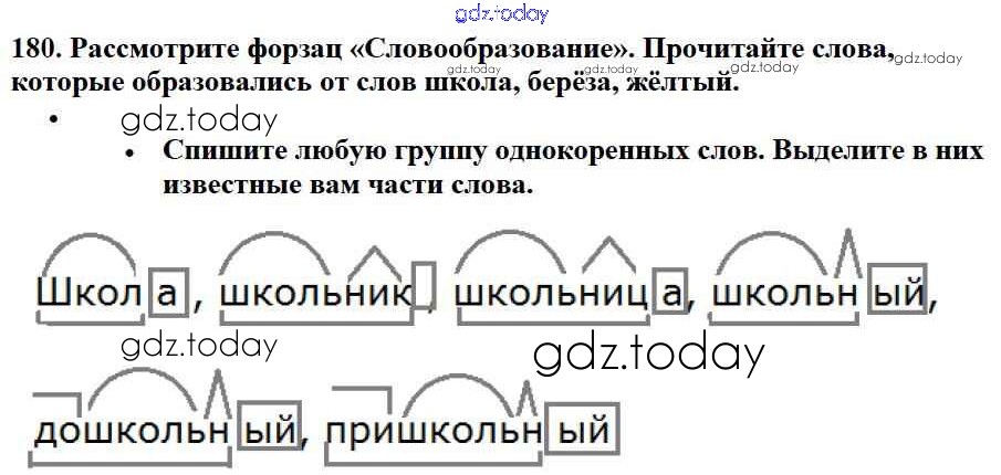 На страницах сайта gdz.today вы найдете учебный и вспомогательный материал, направленный на улучшения знаний школьной программы. ГДЗ - онлайн мир знаний Упражнения Часть 1 180 Учебнику по Русскому языку для 3 класса Канакина, Горецкий Просвещение Школа России 2013