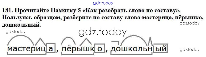 На страницах сайта gdz.today вы найдете учебный и вспомогательный материал, направленный на улучшения знаний школьной программы. ГДЗ - онлайн мир знаний Упражнения Часть 1 181 Учебнику по Русскому языку для 3 класса Канакина, Горецкий Просвещение Школа России 2013