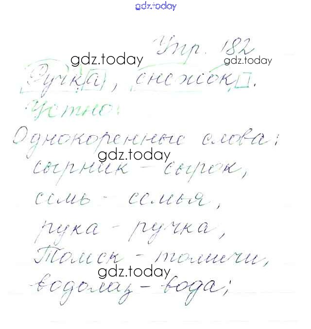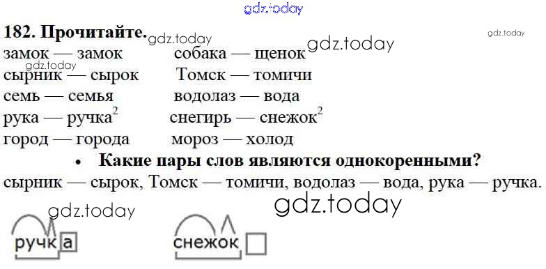 Ответы к Упражнения Часть 1 182 Учебнику по Русскому языку для 3 класса Канакина, Горецкий Просвещение Школа России 2013