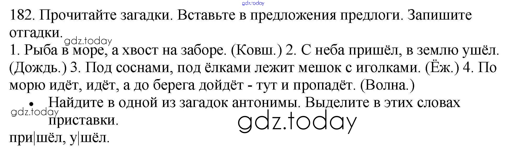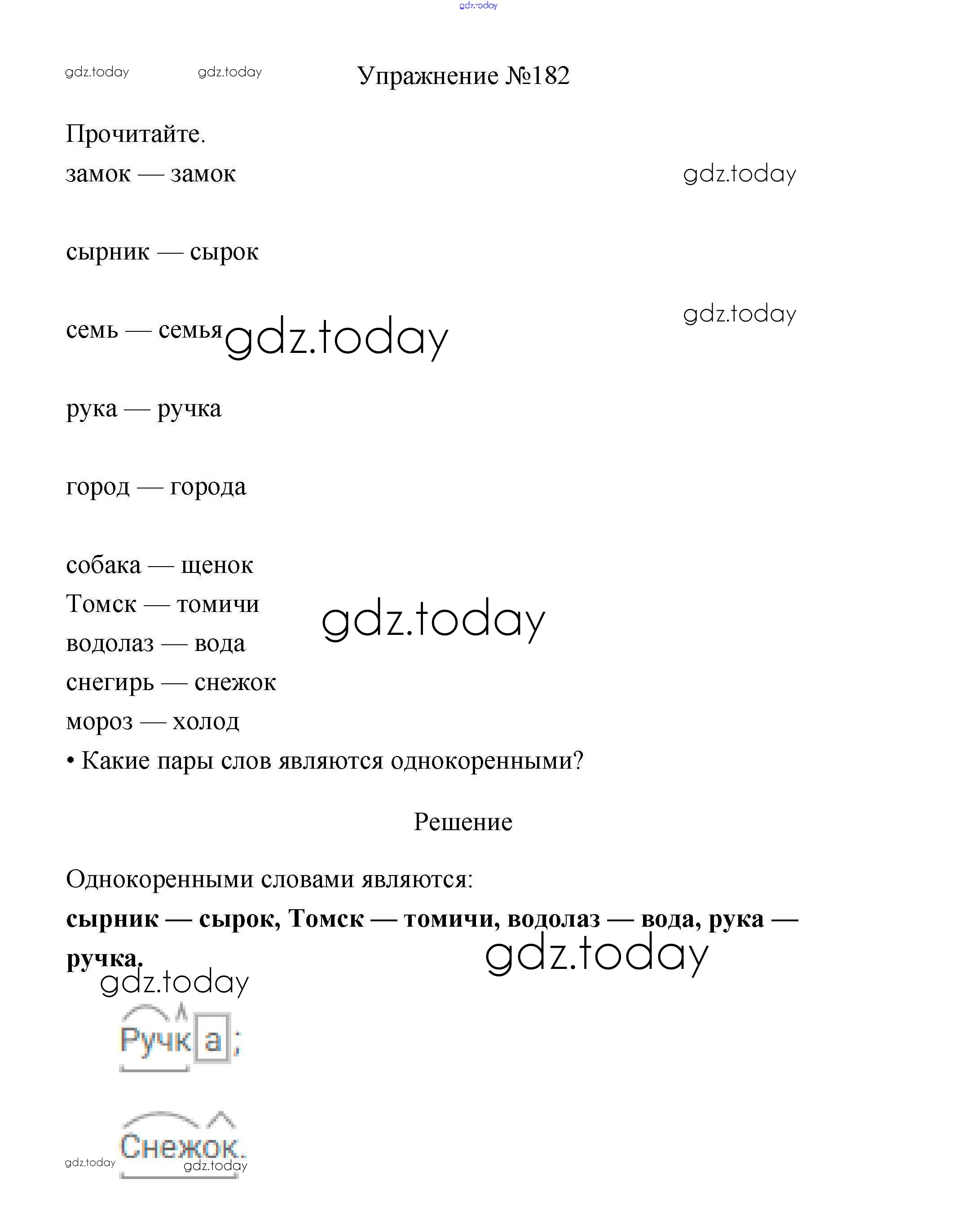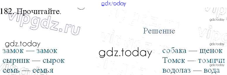 На страницах сайта gdz.today вы найдете учебный и вспомогательный материал, направленный на улучшения знаний школьной программы. ГДЗ - онлайн мир знаний Упражнения Часть 1 182 Учебнику по Русскому языку для 3 класса Канакина, Горецкий Просвещение Школа России 2013