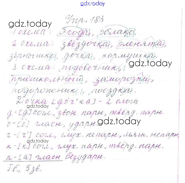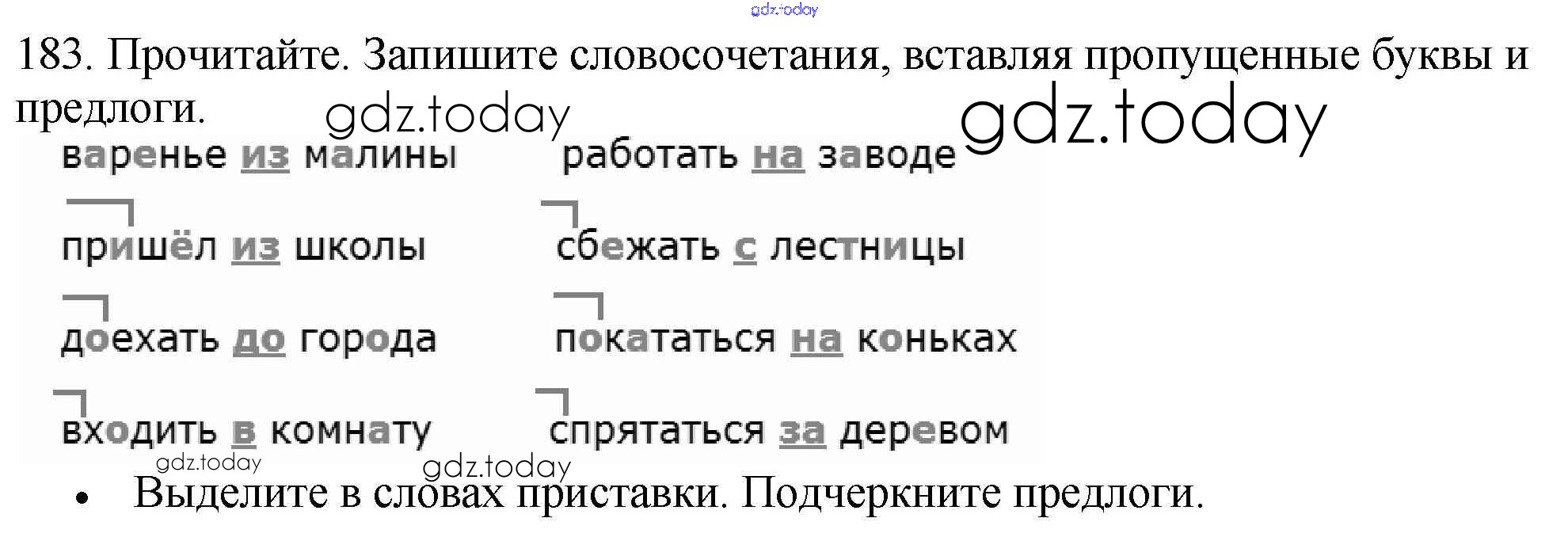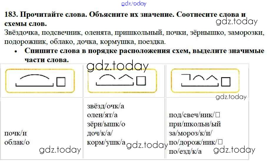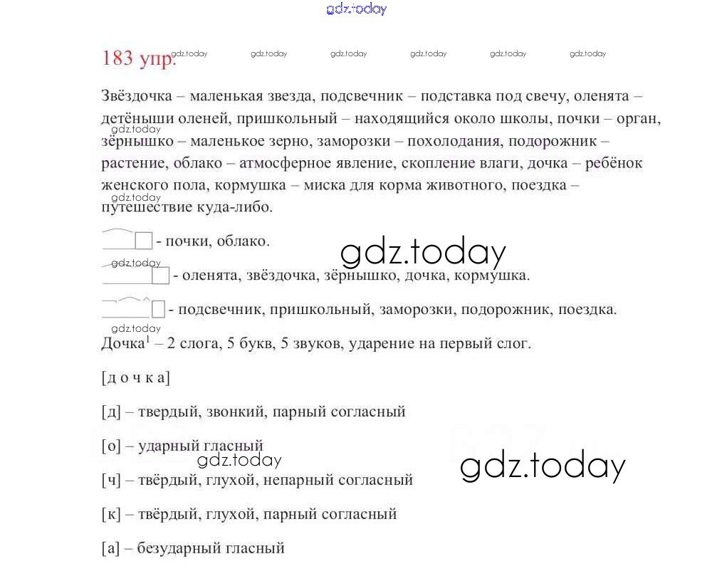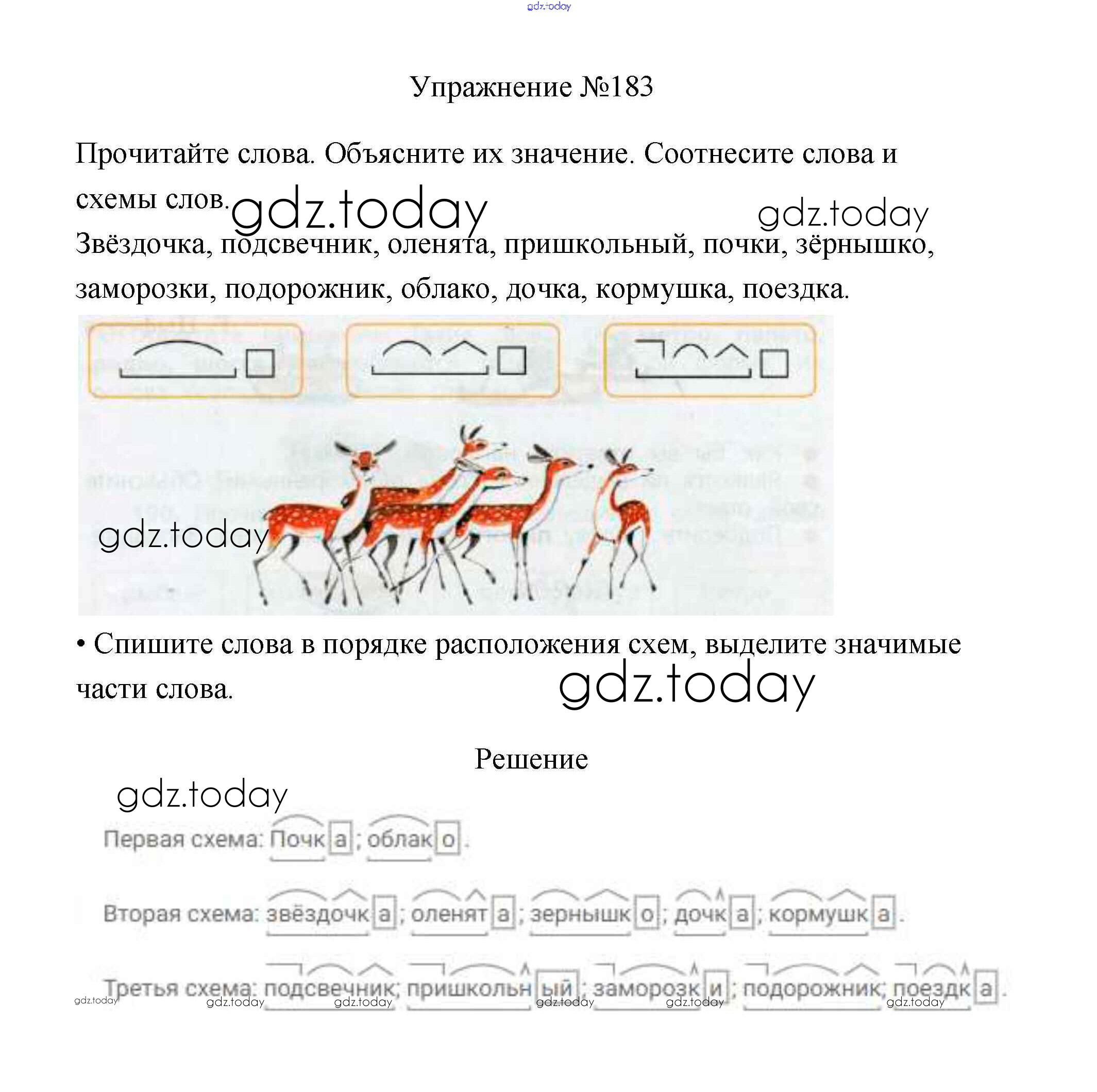 На страницах сайта gdz.today вы найдете учебный и вспомогательный материал, направленный на улучшения знаний школьной программы. ГДЗ - онлайн мир знаний Упражнения Часть 1 183 Учебнику по Русскому языку для 3 класса Канакина, Горецкий Просвещение Школа России 2013
