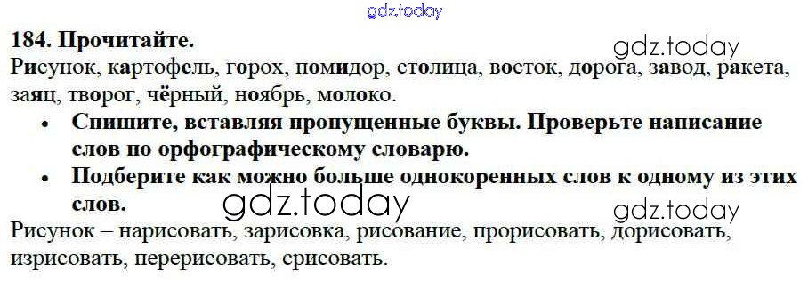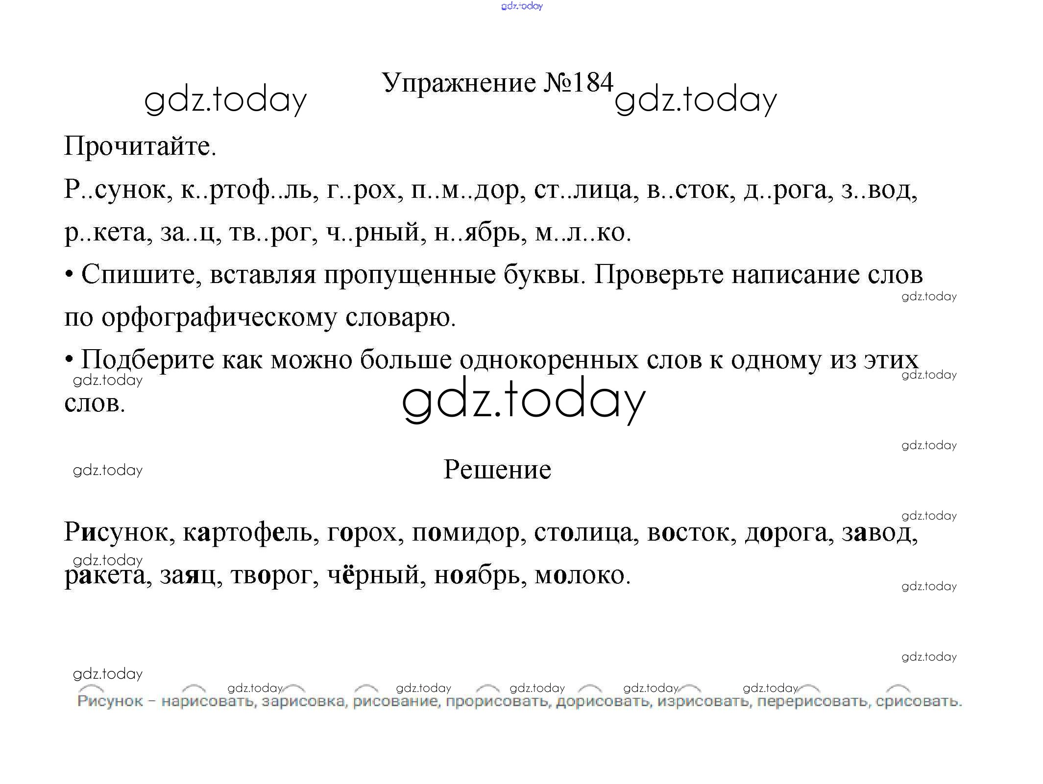 На страницах сайта gdz.today вы найдете учебный и вспомогательный материал, направленный на улучшения знаний школьной программы. ГДЗ - онлайн мир знаний Упражнения Часть 1 184 Учебнику по Русскому языку для 3 класса Канакина, Горецкий Просвещение Школа России 2013