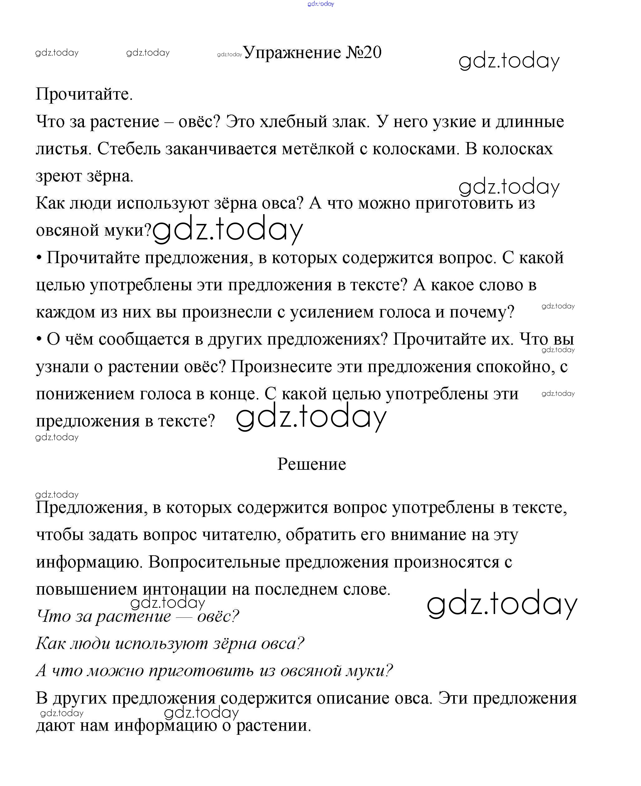 На страницах сайта gdz.today вы найдете учебный и вспомогательный материал, направленный на улучшения знаний школьной программы. ГДЗ - онлайн мир знаний Упражнения Часть 1 20 Учебнику по Русскому языку для 3 класса Канакина, Горецкий Просвещение Школа России 2013