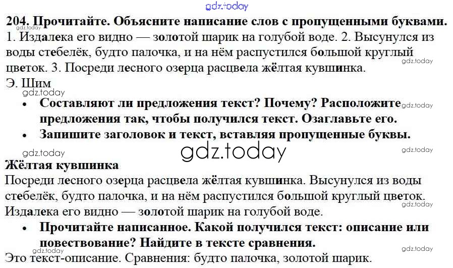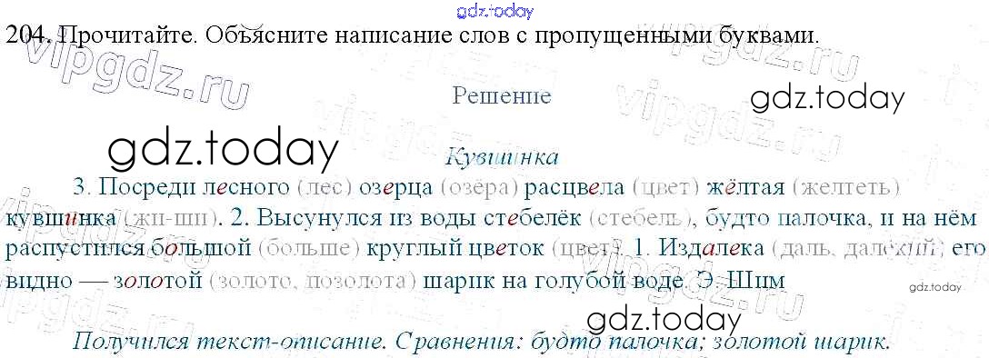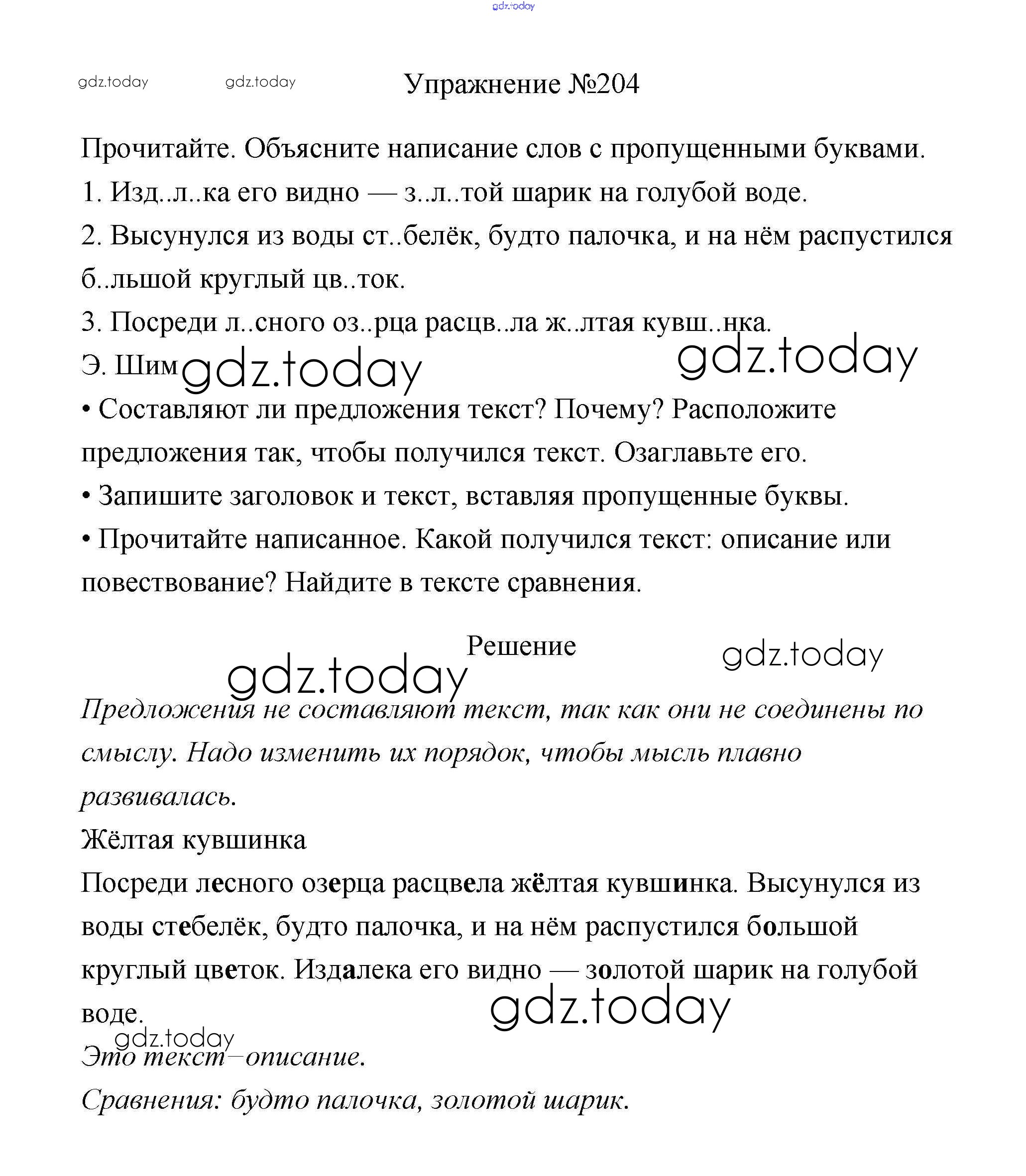 На страницах сайта gdz.today вы найдете учебный и вспомогательный материал, направленный на улучшения знаний школьной программы. ГДЗ - онлайн мир знаний Упражнения Часть 1 204 Учебнику по Русскому языку для 3 класса Канакина, Горецкий Просвещение Школа России 2013