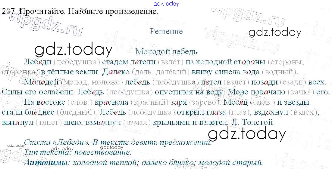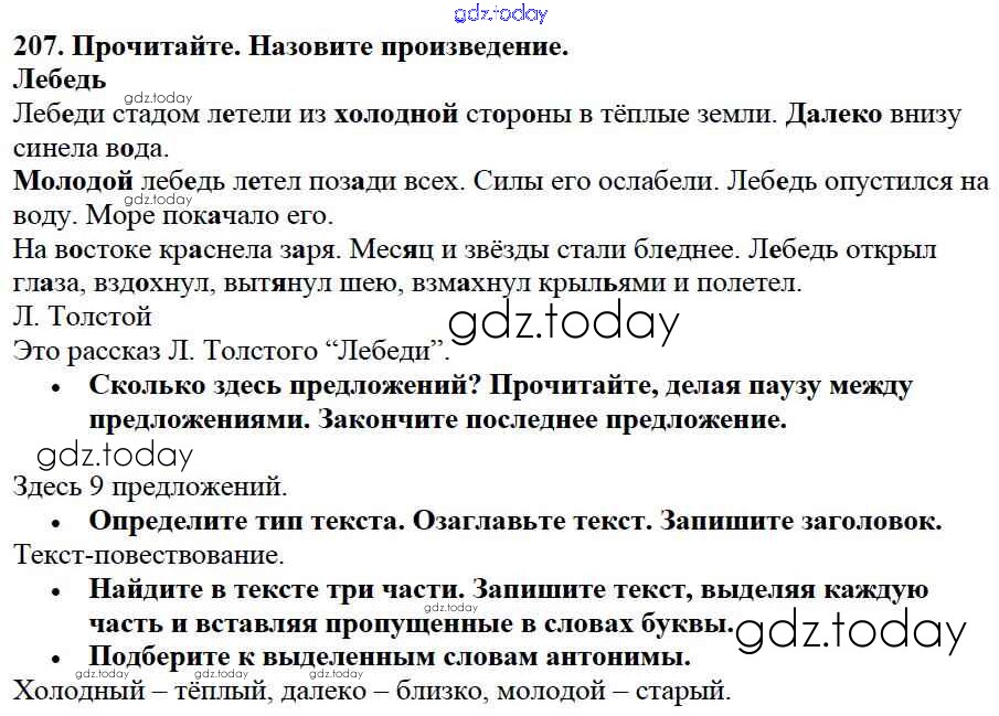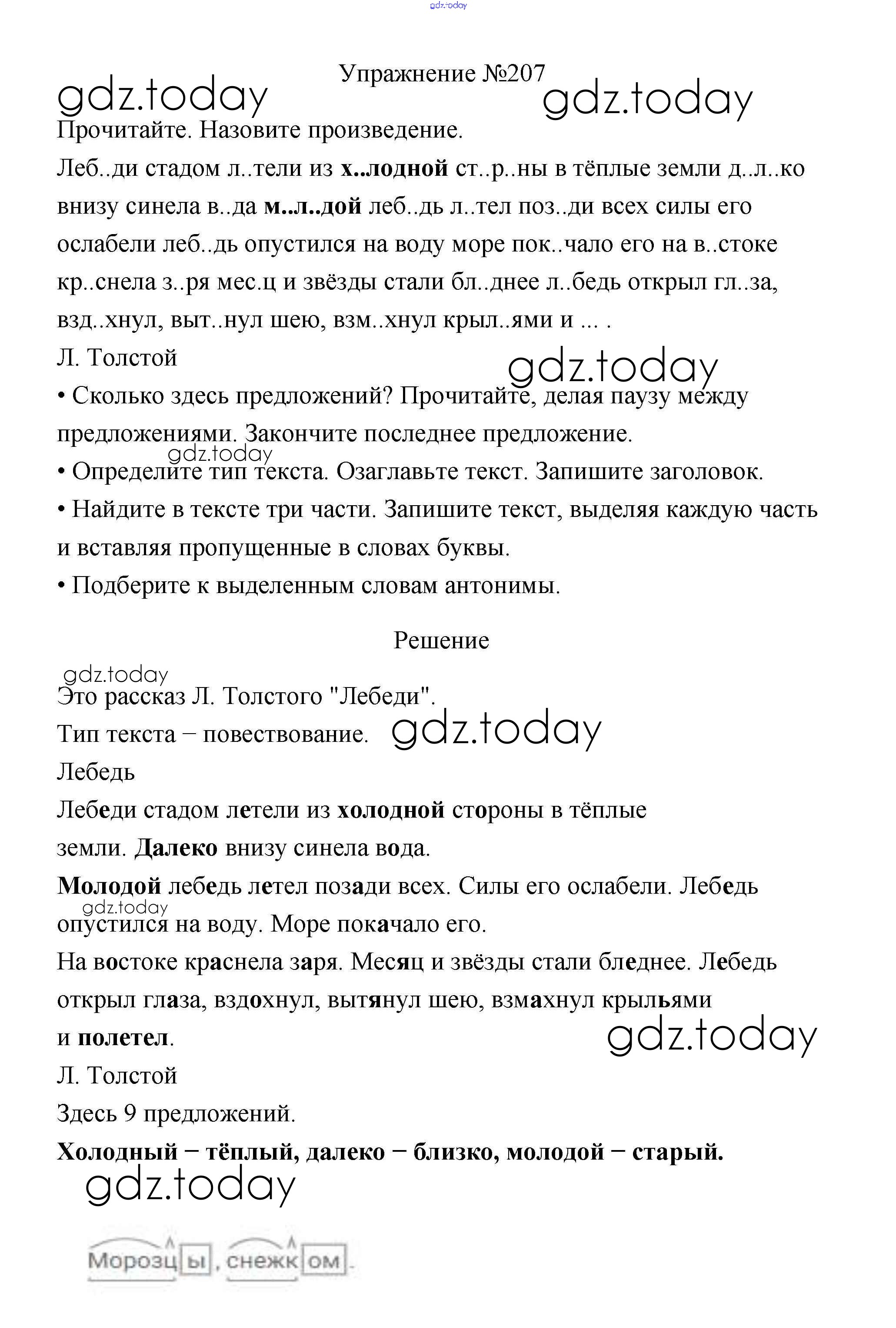 На страницах сайта gdz.today вы найдете учебный и вспомогательный материал, направленный на улучшения знаний школьной программы. ГДЗ - онлайн мир знаний Упражнения Часть 1 207 Учебнику по Русскому языку для 3 класса Канакина, Горецкий Просвещение Школа России 2013