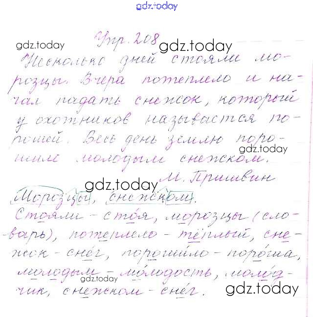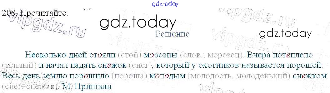 Ответы к Упражнения Часть 1 208 Учебнику по Русскому языку для 3 класса Канакина, Горецкий Просвещение Школа России 2013