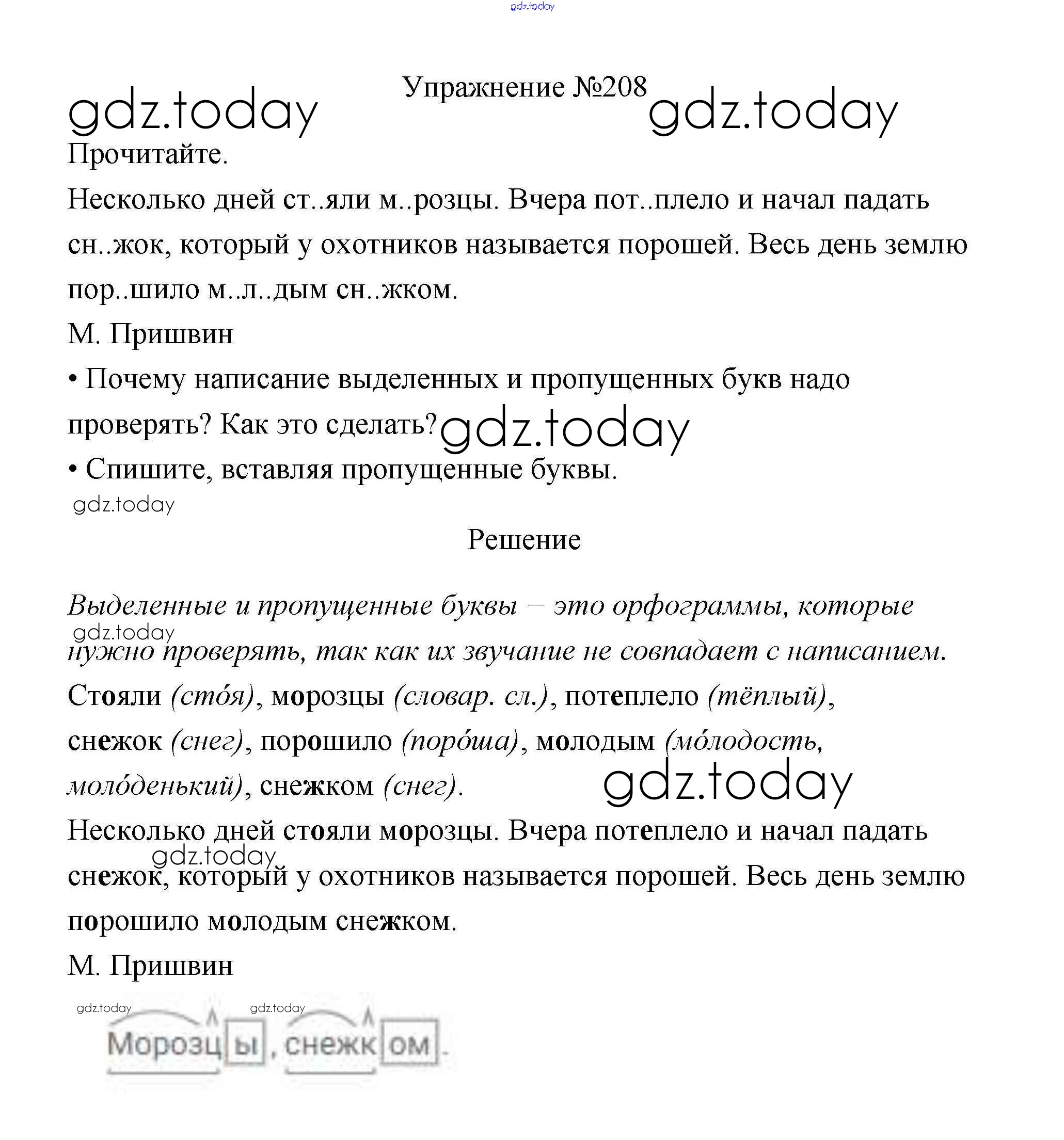 На страницах сайта gdz.today вы найдете учебный и вспомогательный материал, направленный на улучшения знаний школьной программы. ГДЗ - онлайн мир знаний Упражнения Часть 1 208 Учебнику по Русскому языку для 3 класса Канакина, Горецкий Просвещение Школа России 2013