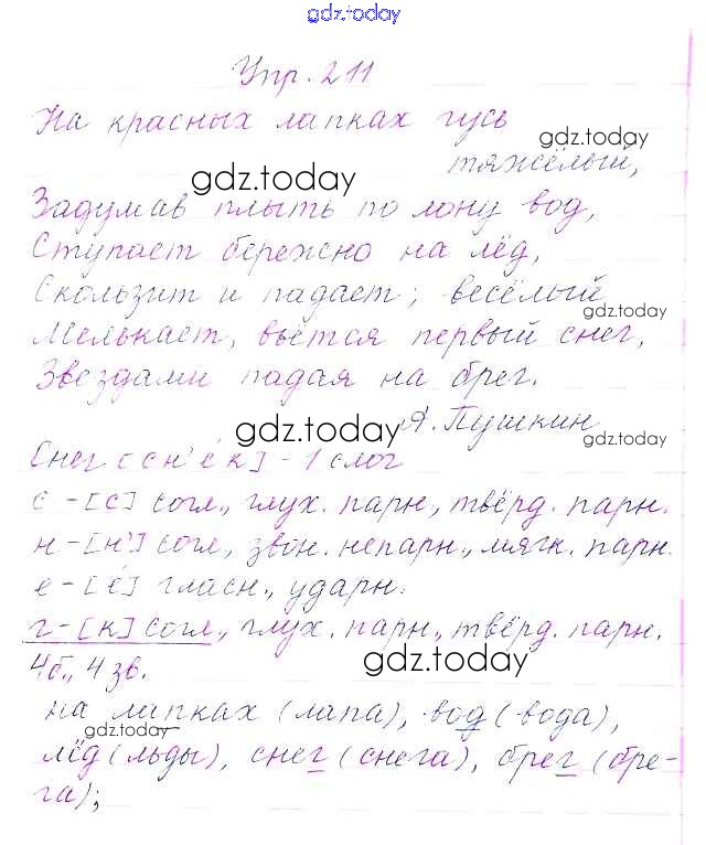 На страницах сайта gdz.today вы найдете учебный и вспомогательный материал, направленный на улучшения знаний школьной программы. ГДЗ - онлайн мир знаний Упражнения Часть 1 211 Учебнику по Русскому языку для 3 класса Канакина, Горецкий Просвещение Школа России 2013