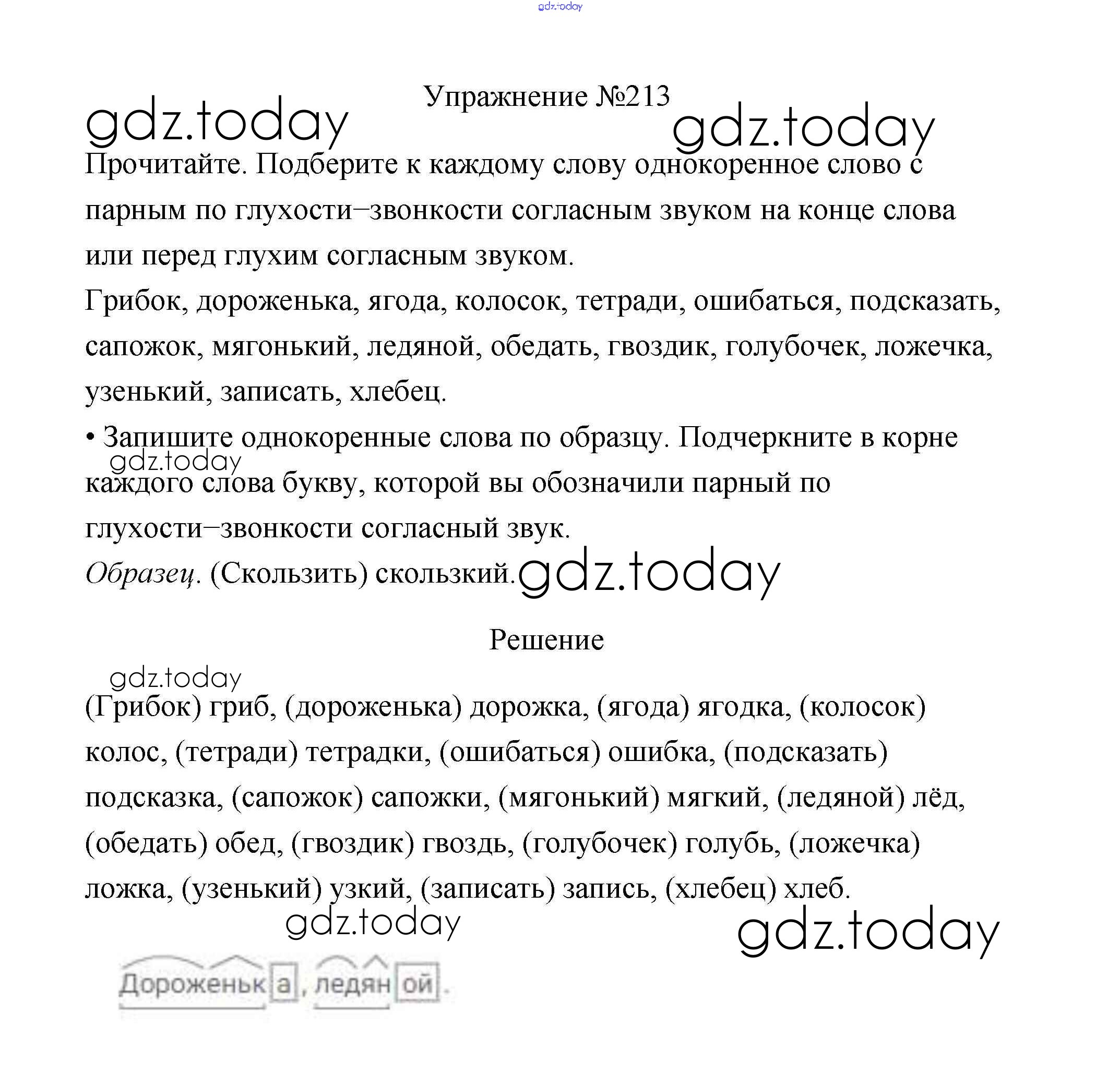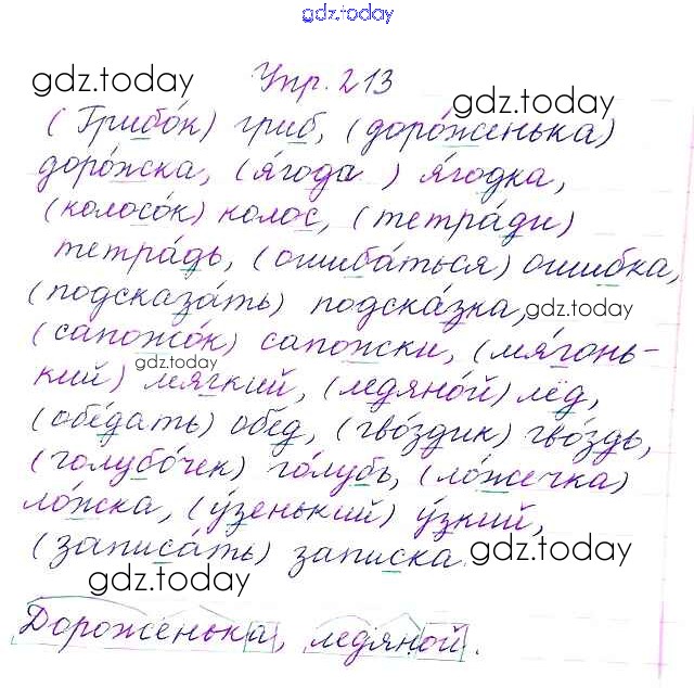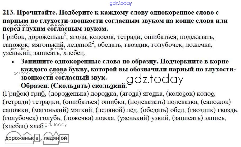 На страницах сайта gdz.today вы найдете учебный и вспомогательный материал, направленный на улучшения знаний школьной программы. ГДЗ - онлайн мир знаний Упражнения Часть 1 213 Учебнику по Русскому языку для 3 класса Канакина, Горецкий Просвещение Школа России 2013