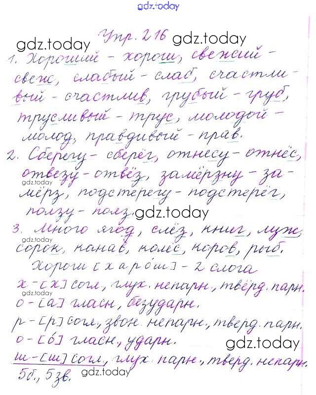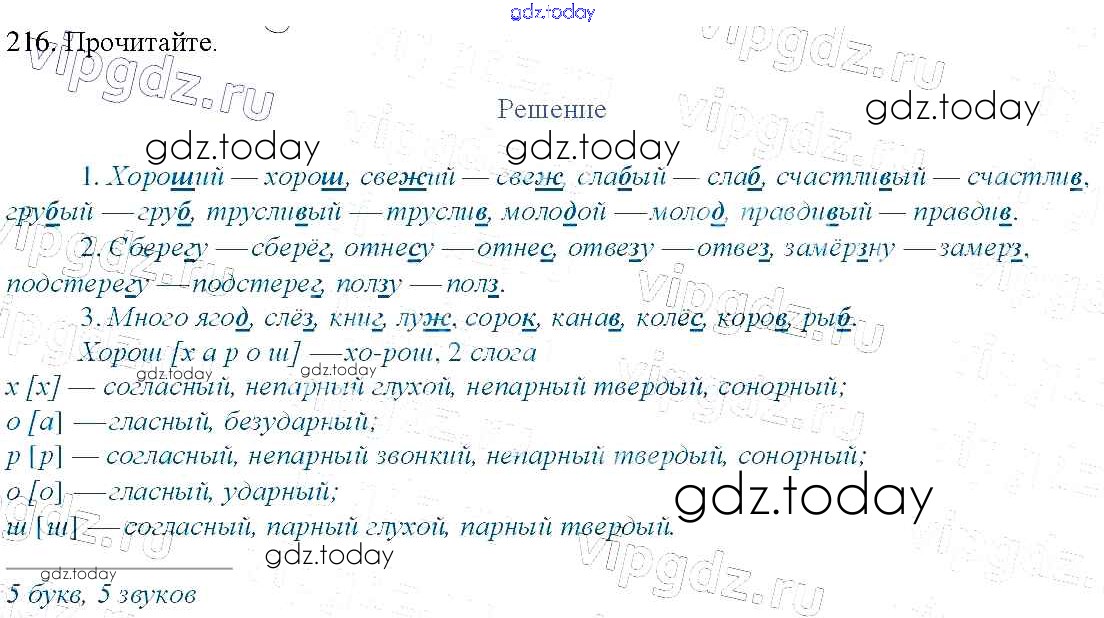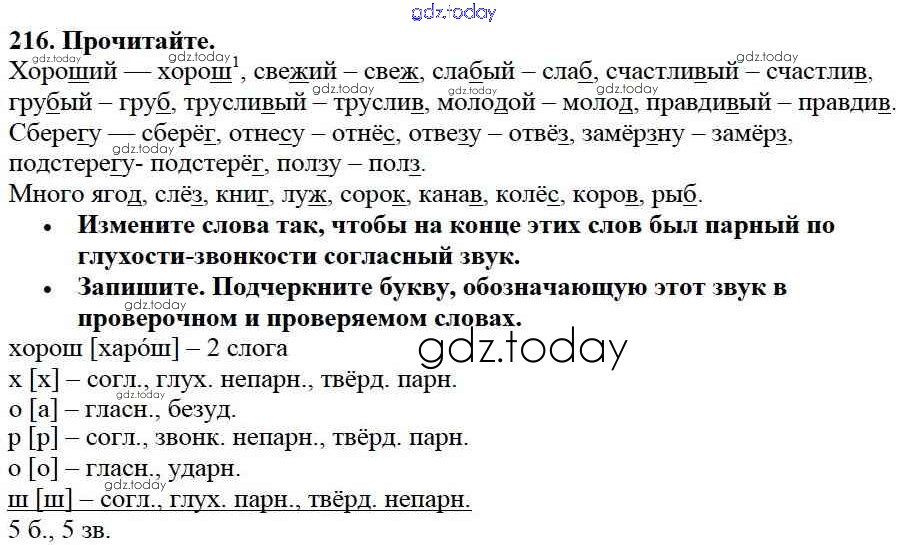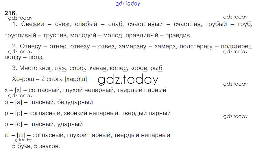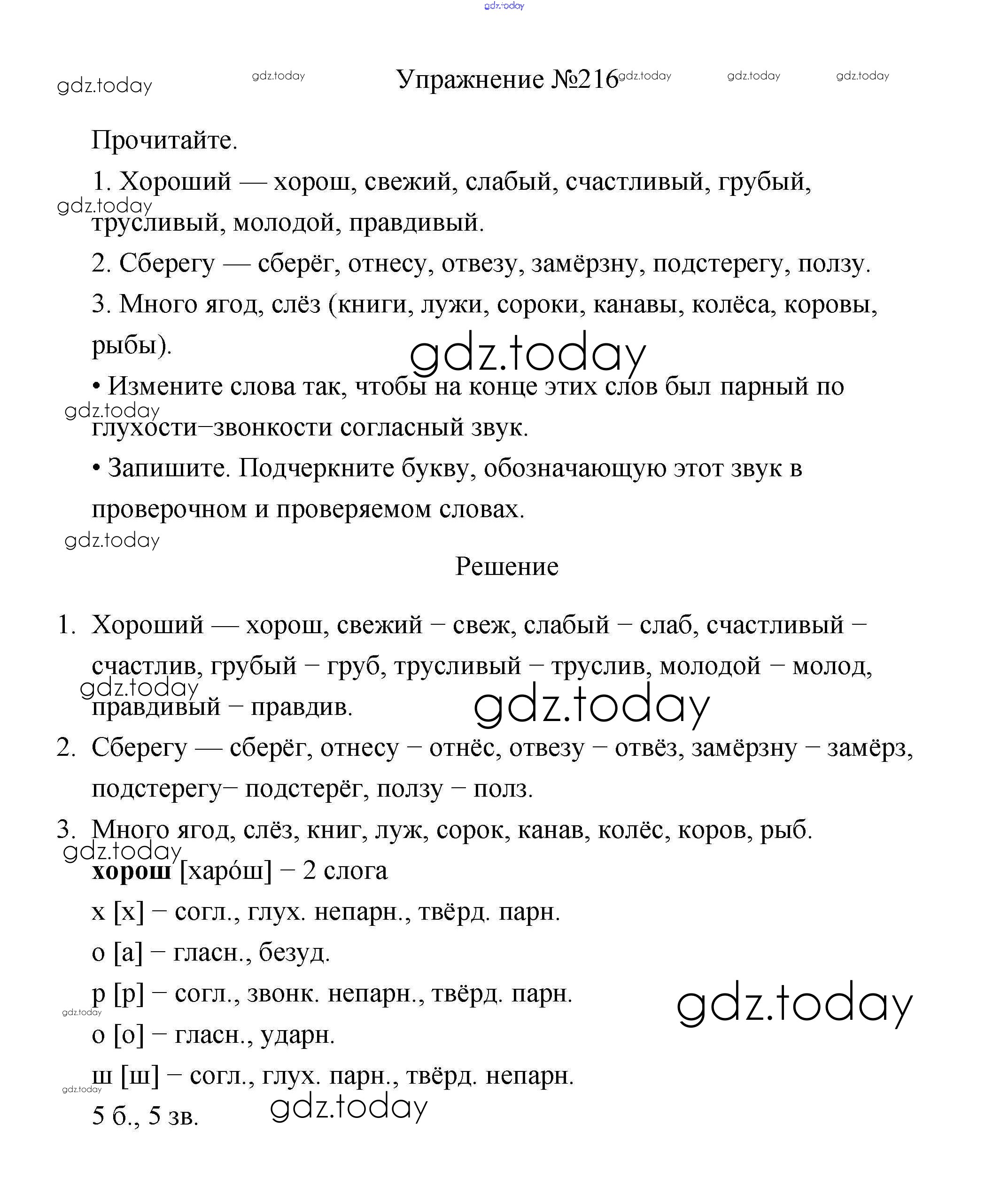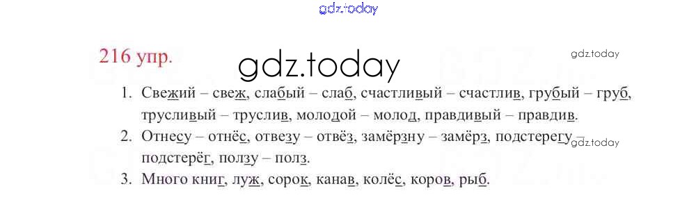 На страницах сайта gdz.today вы найдете учебный и вспомогательный материал, направленный на улучшения знаний школьной программы. ГДЗ - онлайн мир знаний Упражнения Часть 1 216 Учебнику по Русскому языку для 3 класса Канакина, Горецкий Просвещение Школа России 2013