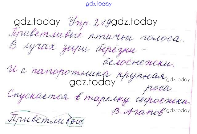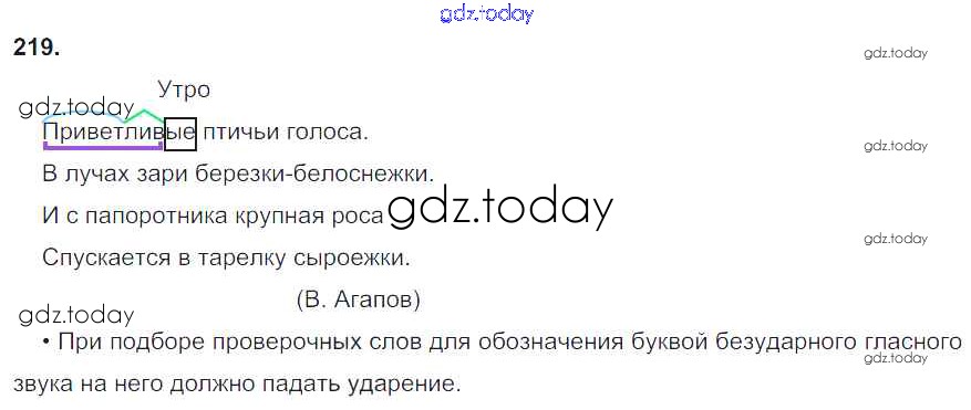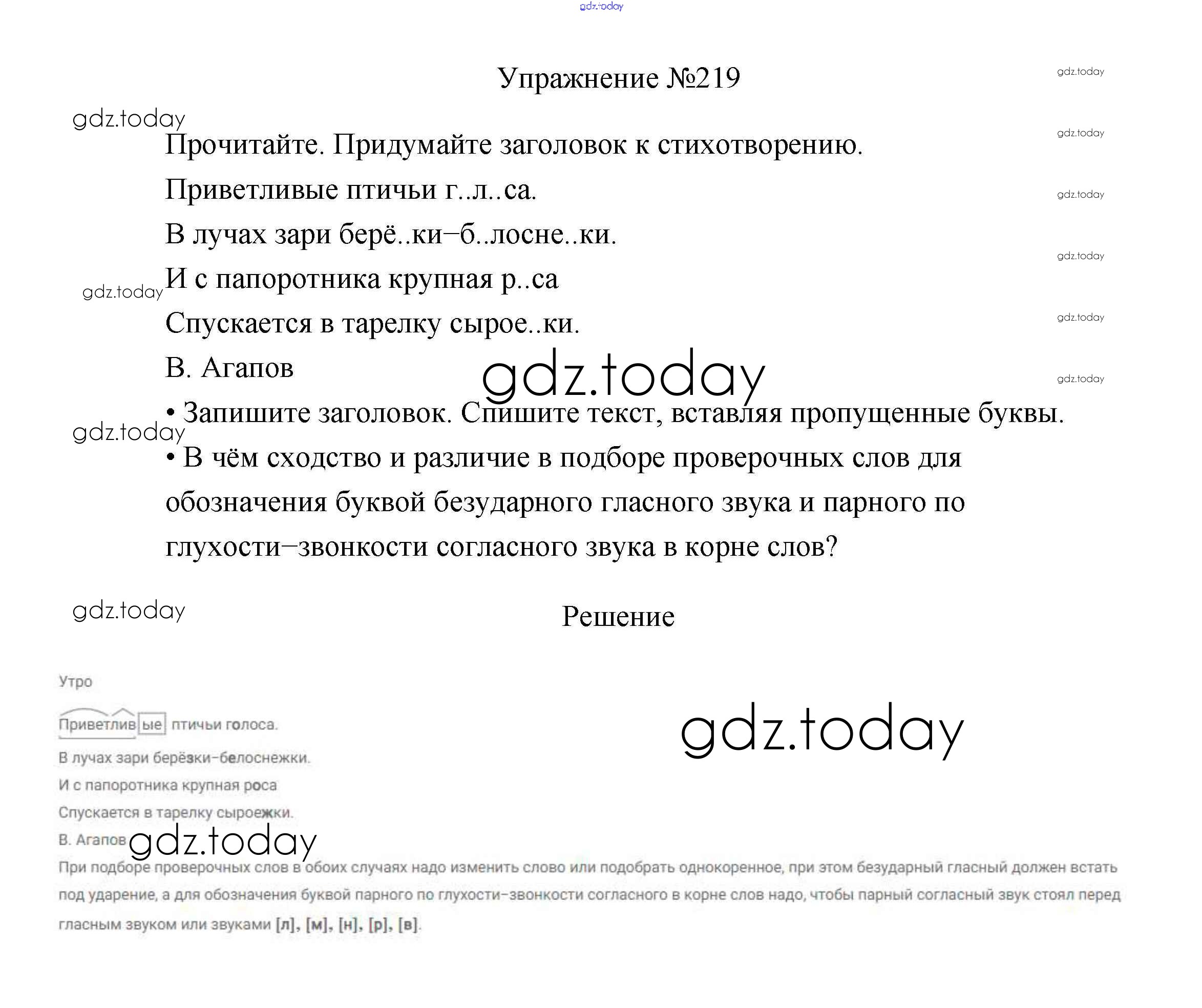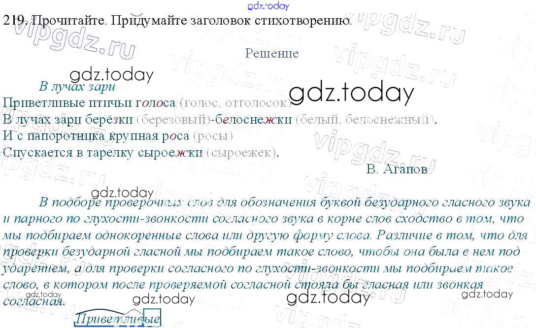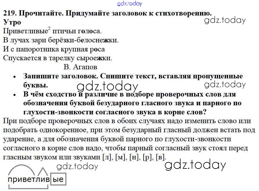 На страницах сайта gdz.today вы найдете учебный и вспомогательный материал, направленный на улучшения знаний школьной программы. ГДЗ - онлайн мир знаний Упражнения Часть 1 219 Учебнику по Русскому языку для 3 класса Канакина, Горецкий Просвещение Школа России 2013