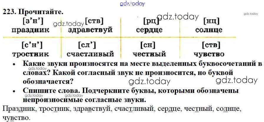 На страницах сайта gdz.today вы найдете учебный и вспомогательный материал, направленный на улучшения знаний школьной программы. ГДЗ - онлайн мир знаний Упражнения Часть 1 223 Учебнику по Русскому языку для 3 класса Канакина, Горецкий Просвещение Школа России 2013