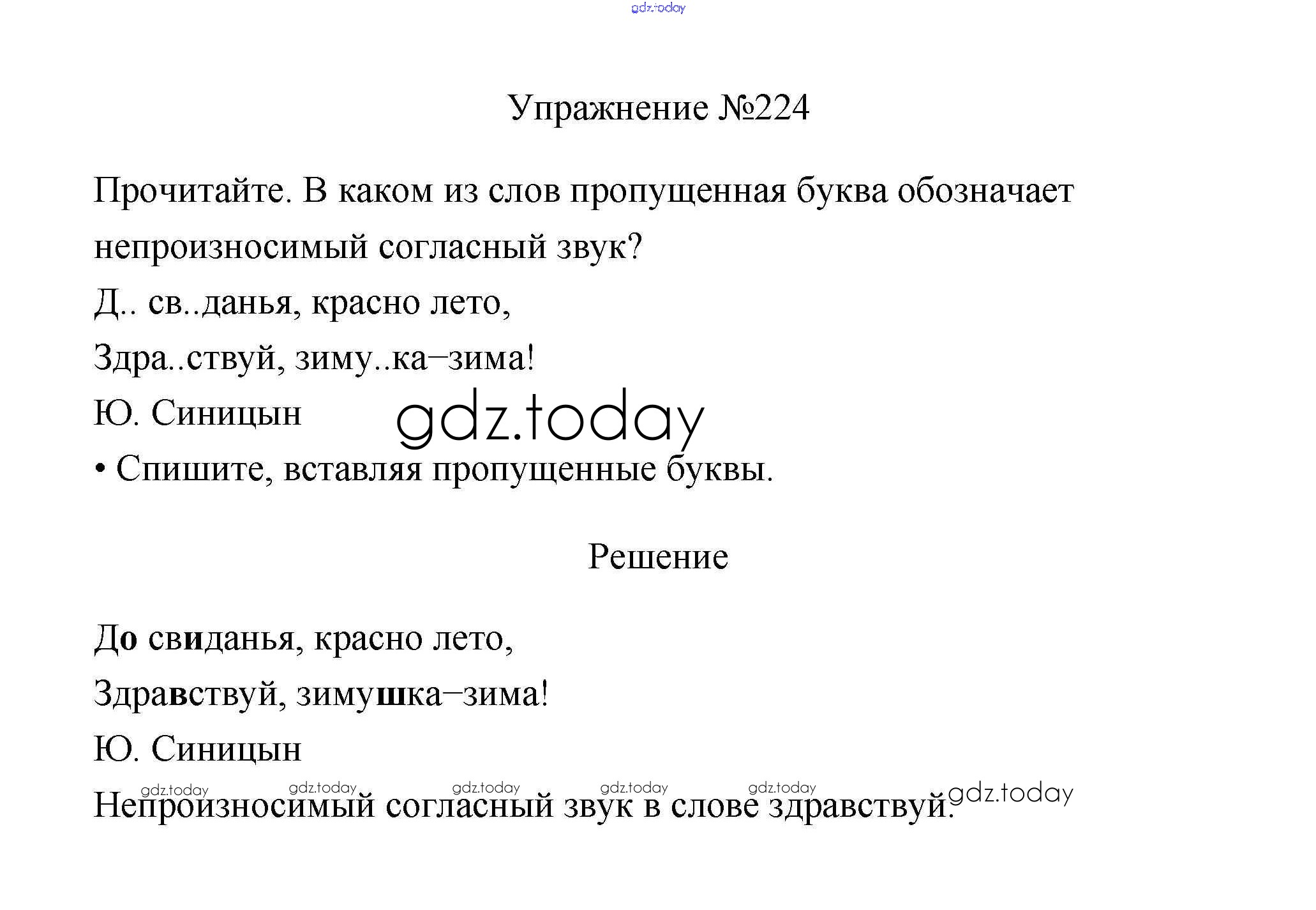 На страницах сайта gdz.today вы найдете учебный и вспомогательный материал, направленный на улучшения знаний школьной программы. ГДЗ - онлайн мир знаний Упражнения Часть 1 224 Учебнику по Русскому языку для 3 класса Канакина, Горецкий Просвещение Школа России 2013